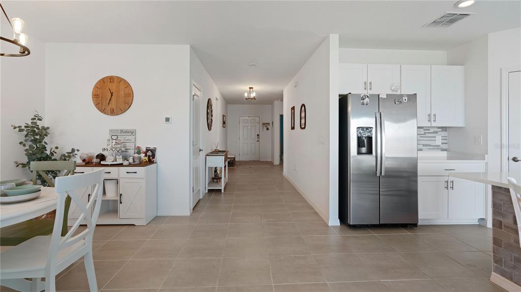 Built in 2022 with an oversized lot! this 2 year old, modern home welcomes with an intimate entryway, then expands out into an open floor-plan with ceramic tile flooring, perfect for everyday living. spacious kitchen with classic white cabinetry, designer backsplash, breakfast bar and stainless steel appliances and accents, all creating a sleek, bright feel. the neutral colors in the home allows for versatile and easy to coordinate styles and color schemes. cozy bedrooms, with accent walls, presents both comfort and delight. enjoy the outdoors as you celebrate your sizeable property lines. your two car-garage comes ready for action with easy to clean and resistant to stains - epoxy flooring. home is nestled in the city of groveland, which invites community living with natural charm; from seasonal festivals, lakes, parks, and nature trails, including lake david park with fishing, kayaking, and a skate park. home is convenient access to florida's turnpike, shopping and more. come and experience the florida lifestyle!1020 CALICO POINTE, GROVELAND, FL 34736