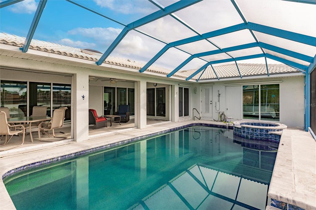 Welcome to your slice of paradise in punta gorda isles! this meticulously maintained 3-bedroom, 2-bathroom waterfront home offers the perfect blend of comfort elegance and coastal charm. but the real show stopper is the newly refurbished pool and spa where you can relax and unwind while enjoying breathtaking sunsets over the water. the outdoor screened-in lanai offers a perfect setting for outdoor dining, lounging, or simply soaking in the florida lifestyle. this well designed split floor plan home includes an open-concept living room/ kitchen space, as well as an additional living room and dining room, craft space and very large bedrooms. almost every area of the home offers beautiful lake views.the kitchen is a chef's delight, featuring high-end appliances and granite countertops with ample cabinetry. the primary suite is a true retreat, complete with a spacious layout, walk-in his/her closets, and a luxurious ensuite bathroom. this home also has a two-car garage with ev hook up, new hot water tank, reverse osmosis in the kitchen and is surrounded by lush landscaping located on one of the most scenic streets in the isles (a panoramic view of the charlotte harbor steps down the street) and close proximity to punta gorda's downtown, shopping, and dining, the peace river wildlife center and ponce de leon park! this home provides the perfect blend of comfort and convenience. multiple boat clubs are located within 3 miles. schedule your showing today!103 COLONY PT, PUNTA GORDA, FL 33950