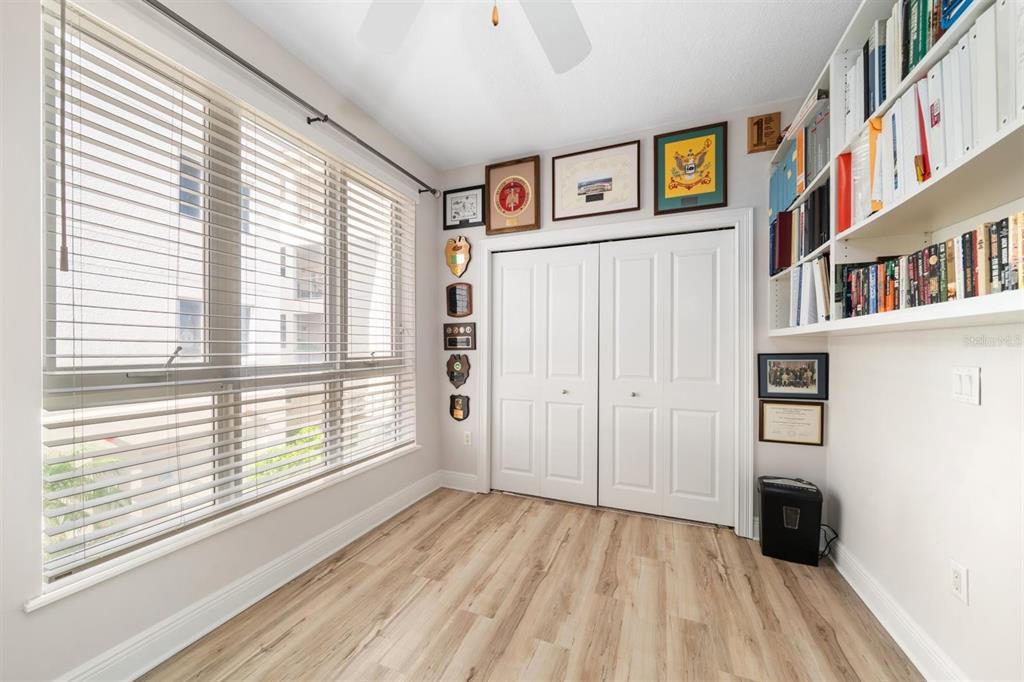 One or more photo(s) has been virtually staged. bellasol is a luxury waterfront community! this corner condo is located on the second floor. this home features four bedrooms, three full baths, an oversized two car garage (580 sq. ft.) and a deeded dock. the private front porch is covered and convenient to the elevator or stairs. as you enter through the solid wood door you will be amazed by the inviting floor plan of spacious open living. lovely hardwood floors are in the entertainment areas. the dining room with tray ceiling and crown moulding sets the stage for serving formal or informal dinners. the great room has many windows and sliding doors for easy access to the rear porch/balcony. the kitchen has wood cabinets, back splash, double sinks, granite counters and stainless-steel appliances. the large island offers comfortable bar stool seating. perfect for socializing and entertaining. the primary bedroom is strategically located for ultimate privacy, delights with tray ceiling, crown moulding, wood plank tile floors, 10'x8' walk-in closet and sliding doors to the rear balcony with water views. the en-suite bathroom is a spa-like retreat with a large double vanity of granite, porcelain sinks, a soaking tub and a walk-in shower. the additional bedroom w/en-suite offers a queen-size murphy bed. the 3rd bedroom has an additional full bathroom conveniently located across the hallway. enter through glass paned french doors into an office/study with floor to ceiling custom built-in library shelves. this charming room could be used as another guest room. ceiling fans are in all bedrooms, cat5 network was installed in most rooms. the dock has water and electricity the maximum vessel length is 32'. the marina has a launch area for kayaks and other water sport vehicles. the elevators are conveniently located in each building this adds to the exclusivity. the over sized 2-car garage provides space for your vehicles and the custom built-in cabinets add storage. the gated community ensures security and privacy with security cameras at the entrance. perks include convenient access to a 24/7access fully equipped fitness center, clubhouse with bathrooms, rental space for parties, propane grills, a community pool with hot tub, a tiki bar, wi-fi and a dockside lifestyle. condo maintenance free living with flood insurance included as well as water, trash, and high-speed internet. walking distance to renowned restaurants like finns, circles, apollo pizza, cigar bar as well as the beach, ensures that entertainment and relaxation are always within reach. easy boating access to tampa bay, no fixed bridges. strategically located between sarasota and tampa, this condo offers the best of both worlds. a tranquil haven with quick access to the vibrant cultural scenes and events of these two cities. this waterfront condo in apollo beach is not just a residence; it's an invitation to a life of luxury, convenience, and endless activities in the heart of the tampa bay area. no damage from storms. compare this home with other waterfront communities, you will be astonished by the value. seller will pay 12 months of maintenance fees at closing,1030 BELLASOL #201, APOLLO BEACH, FL 33572