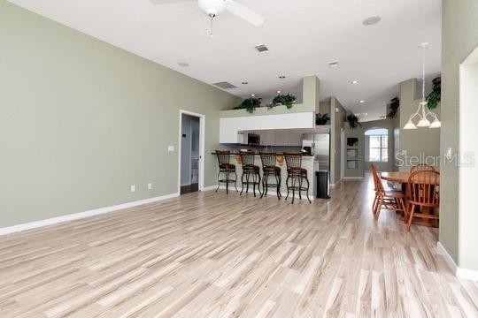 Split Bedroom Walk-In Closet(s)Ceiling Fan(s) Eating Space In Kitchen High Ceilings Stone Counters Window Treatments Solid Surface Counters Solid Wood Cabinets Primary Bedroom Main Floor Kitchen/Family Room ComboExterior Features: