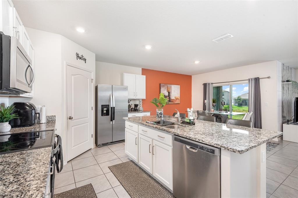 Purchase this home now by assuming the current loan at 5.7 percent interest rate. this delightful residential property offers a modern and comfortable living environment in a highly secluded area of deltona! the home features a thoughtfully designed open floor plan that includes spacious living areas, sophisticated finishes, and an abundance of natural light. upon entering the home, you come into a bright and elegant foyer that provides immediate access to the rooms, and the living and kitchen areas located toward the rear-south of the home, creating an exceptionally private family environment. the kitchen is full of elegance and high quality! the kitchen island is double sized, featuring solid 1-inch one-piece granite countertop. the kitchen sink is nicely designed facing the dining and living areas, allowing for eye contact and communication with your spouse, children, siblings, or friends during gatherings! the kitchen, additionally, is equipped with stainless steel appliances including a refrigerator, stove, microwave, and dishwasher. the kitchen cabinets are 36" tall, providing plenty of storage space with soft-closing hinges, and a walk-in pantry. yes, this is an elegant home that awaits you! high quality ceramic tile flooring with soft color throughout the home, and carpet in the bedrooms. the bathrooms are super neat with high quality 1 inch granite countertops as well! the master bedroom includes a walk-in closet, dual sink vanity and walk-in shower. smart home features include keyless front entry, a smart thermostat, and a video doorbell (by skybell). you will additionally enjoy an attached 2-car garage with a concrete driveway, and a home with block and stucco construction on a slab foundation. the extremely economic community association takes care of the common grounds and playground, ensuring a secure and private atmosphere. located in a peaceful neighborhood, this home is conveniently located near local amenities, parks, schools, and major highways, making it an ideal choice for families or anyone seeking easy access to the attractions of deltona and its surrounding regions. come see it, and make this delightful home yours today!1031 AUGUST SKY, DELTONA, FL 32738