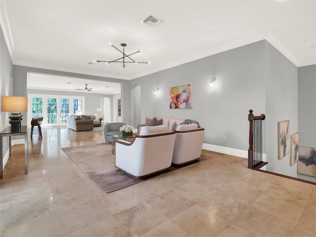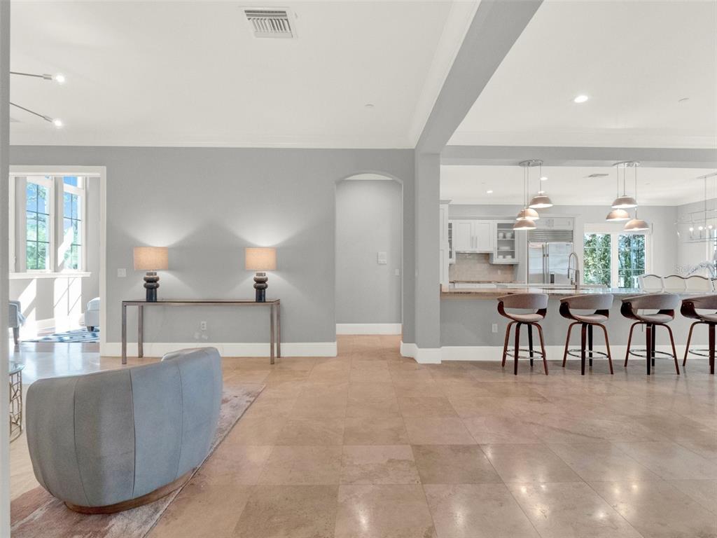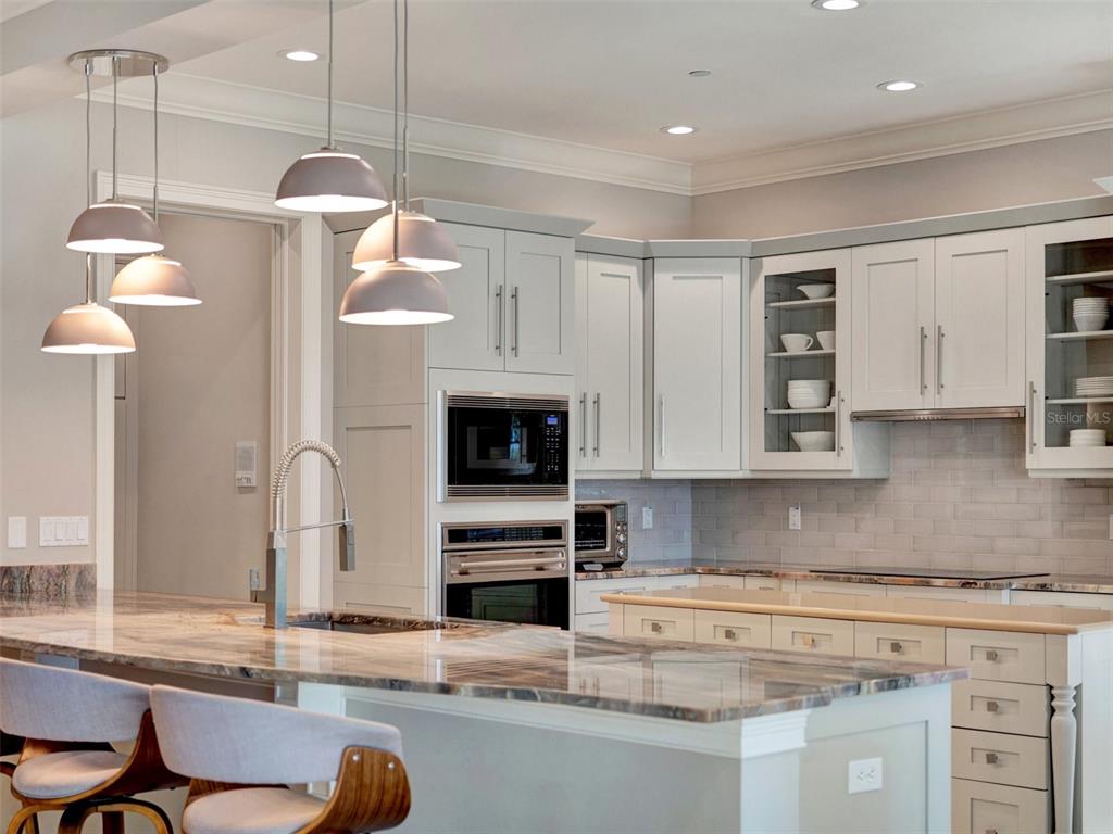 Split BedroomElevatorWet Bar Walk-In Closet(s) Eating Space In Kitchen Living Room/Dining Room Combo Stone Counters Thermostat Open Floorplan Solid Wood CabinetsCrown Molding Primary Bedroom Main Floor Kitchen/Family Room ComboExterior Features: