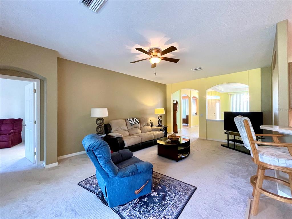 This is just plain good living at it’s best in a prime location with beautiful views of #4! come and see this spacious split floorplan offering 3/2 with separate den plus formal living and dining options. set amidst a wide angled lot with plenty of room between homes this one gives a home style feel while living in a resort type atmosphere. greeted by the paver drive enter to a neutral and diverse color scheme that is sure to include something you love. imagine your treasured pieces filling the many rooms and enjoy new carpeting, brand new roof november 2022, air 2022, extended garage with recessed area for cart and more. a centrally located kitchen allows you to interact with guests while cooking your favorite meals, a large primary suite gives shower and garden tub with huge walk-in closet and private water closet. screened lanai overlooks expansive back yard and hole number 4 where you can have daily free entertainment. this home is prepped for both gas and electric range and dryer. there is no excuse not to have your favorite appliances to enhance your day to day activities. quiet double cul de sac invites less traffic. hoa includes wifi-cable-mowing-edging-trash and use of all common amenities such as pool, spa, fitness, tennis, pickle ball, horseshoe and more. summerglen lot 567.1033 SW 159TH, OCALA, FL 34473
