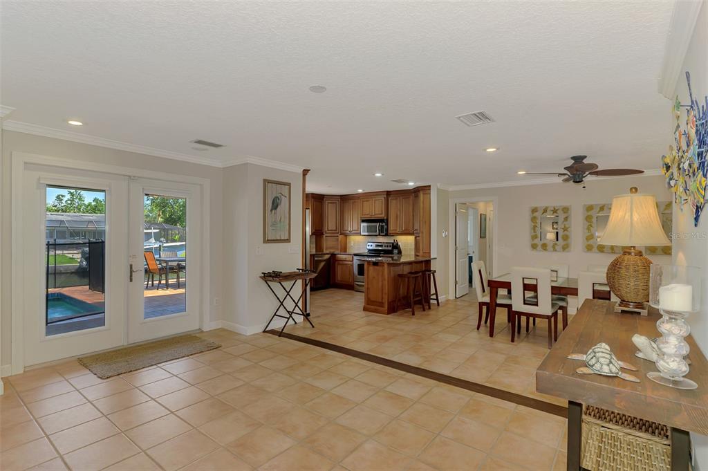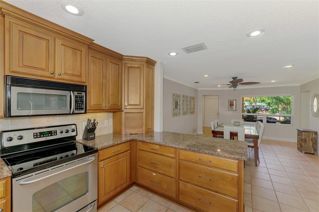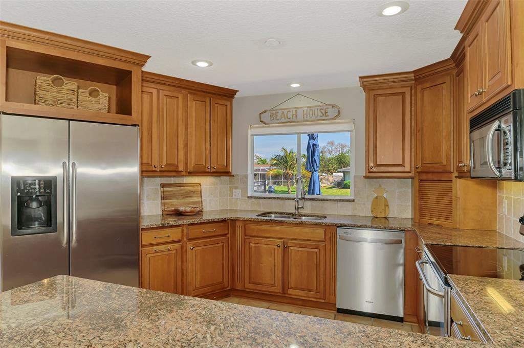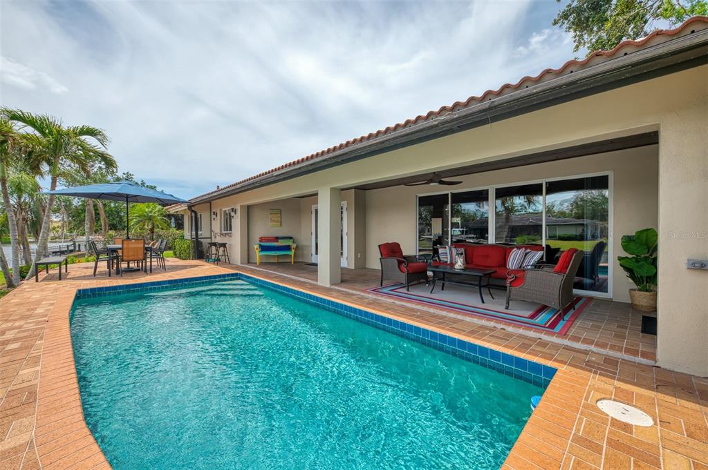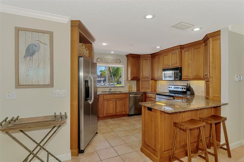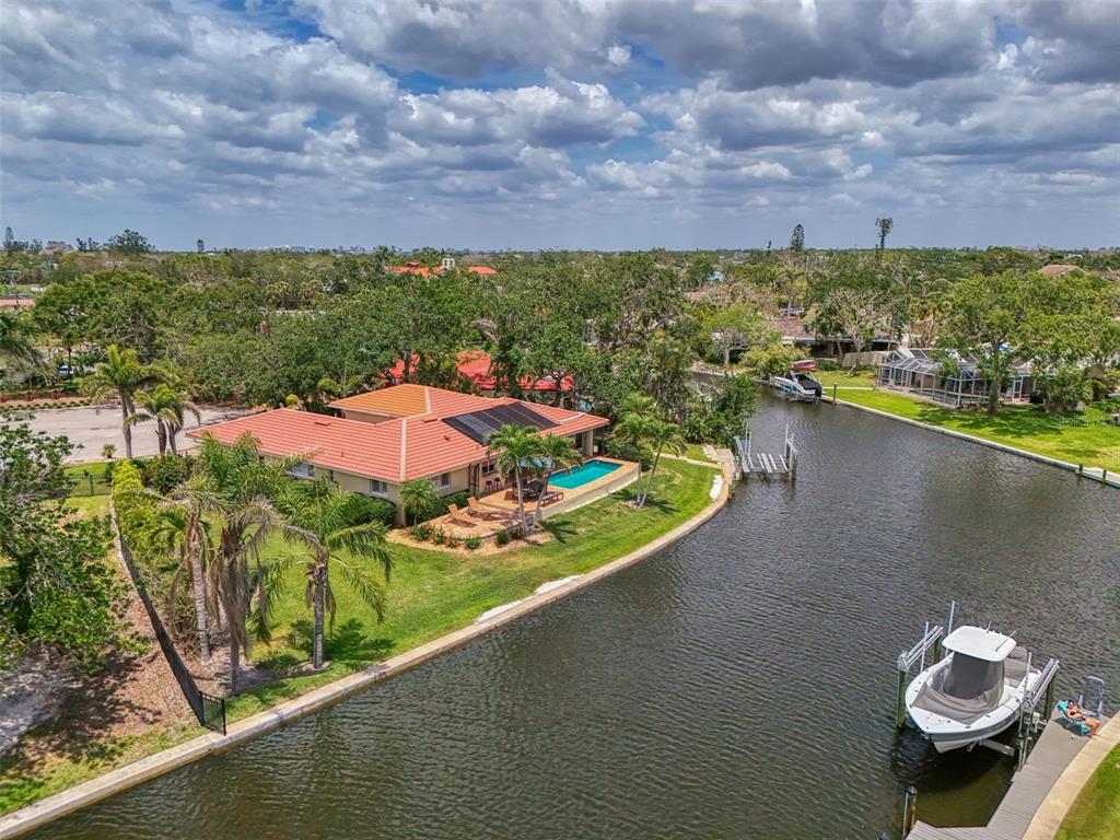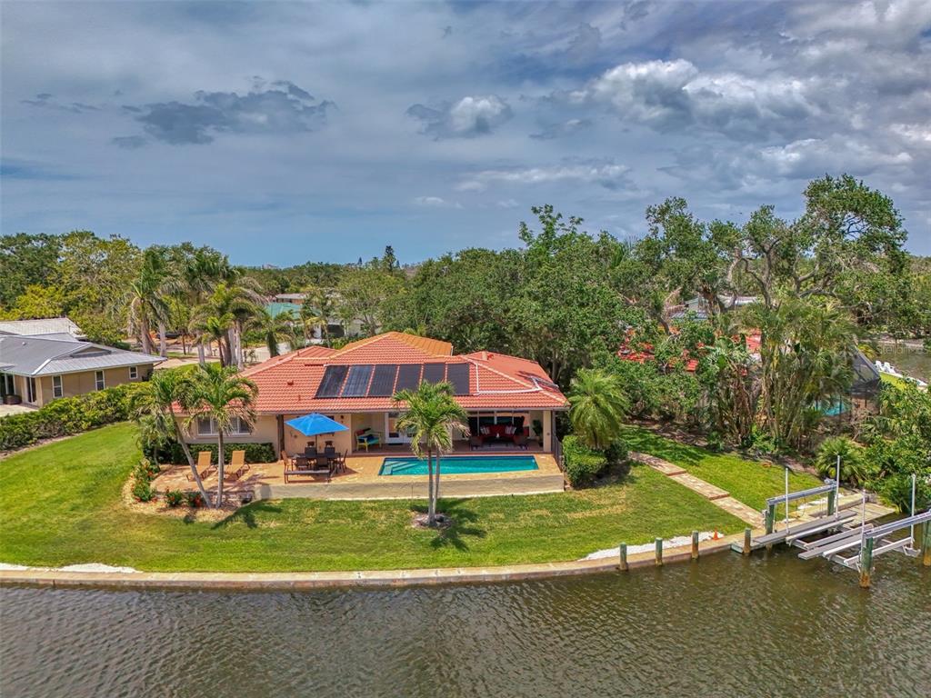 Siesta key canal front home with 175’ of sea wall on the grand canal in the desirable and quaint neighborhood of siesta isles. ride your bike to the village or the world-famous siesta key beach rated #1 in usa. this beautifully well-kept 3 bedroom, 2 bath rutenberg built home is located on a quiet cul-de-sac that is a perennial favorite with lush tropical landscaping and great privacy. the home sits high up on almost a 1/3 of an acre. this home was not affected by hurricane damage. enter thru the charming spanish style courtyard with its new landscaping, double front doors and wide foyer. boasting a flowing floor plan with tile floors and crown molding, the living room & dining room open to the custom gourmet kitchen, featuring handsome wood cabinets, granite counters, & tumbled stone backsplash, perfect for entertaining while overlooking the grand canal from any window. the master bedroom ensuite with private sitting area is nice to enjoy. a new lanai cage installed july 2025. the lanai area faces southeast . there is a paver sundeck & outdoor dining area along with a covered lanai with rectangular pool, boat lift, dock, and cement seawall. relax while you enjoy the serene water views and fabulous florida wildlife, manatee, native birds and many types of fish. you may also enjoy fishing or kayaking from your backyard! tropical mature foliage in park-like yard. minutes to the open bay by boat and near siesta key village where you can enjoy shops and restaurants. this truly is paradise! isn't this the lifestyle you've been planning? selling turn key! great rental income!1038 CONTENTO, SARASOTA, FL 34242