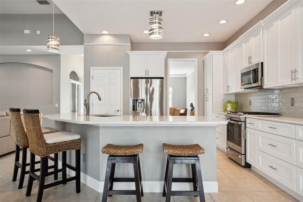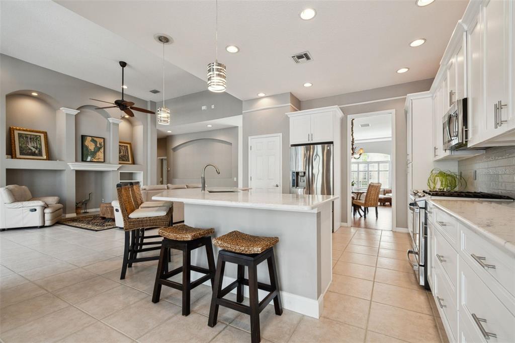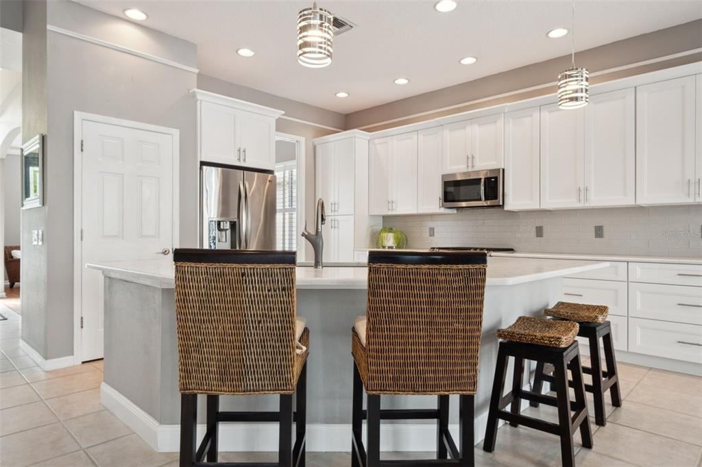 Absolutely gorgeous move-in ready pool home now available in the much sought after, 24-hour guard gated neighborhood of the greens in westchase! this immaculate turn-key one-story home offers 2,458 square feet, including 3 bedrooms + den/office (possible 4th bedroom), 2 bathrooms, and a 2-car garage. as you approach the home, you will immediately notice the beautiful mature landscaping, the lovely front entry, and the stunning 8-foot double glass front doors. inside the home you’ll be struck with the spacious feel of the 13-foot ceilings, the open layout, and the split floor plan. adjacent to the entry you’ll find the generously sized living and dining area to your left, complete with lvp flooring, plantation shutters, and lovely accent lighting above the crown molding. to your right you’ll find the versatile den/office space with ceramic tile and plantation shutters. the well-appointed light and bright kitchen boasts quartz countertops, 42-inch cabinets with crown molding, stainless appliances, and a lovely farmhouse sink. stepping into the great room, you’ll appreciate the built-in detail of the lovely architecture and abundance of natural light flowing into the home from the 4 sets of sliding glass doors. and prepare to be impressed by the amazing outdoor space that overlooks your private conservation views! the spacious back paver patio with enclosed screened lanai surrounds the shimmering heated saltwater pool, complete with adjacent waterfall spa (with pool and spa plumbed to be heated separately). the spacious primary suite boasts a double door entry, a lovely tray ceiling, and a drop-dead gorgeous ensuite bath, complete with a huge walk-in closet! this beautifully renovated bathroom features a deep soaker tub, a stunning walk-in tiled shower, and a separate water closet. the secondary bedrooms both feature overhead lighting and ceiling fans and are located right by the lovely hall bathroom, complete with tiled bath/shower and double sinks. the home also includes a nice sized laundry room with linen closet, a convenient utility sink, and shelving/storage space. there is a long list of impressive updates in this home: new pool heater (2022), upgraded double front doors (2021), remodeled kitchen (2020), new roof (2018), remodeled primary bathroom (2017), new water heater (2017), new carpet in all bedrooms (2017), re-screened lanai (2016), and more! the westchase community has fantastic schools and offers fabulous amenities: 18-hole golf course, tennis, pickleball, two community pools, toddler pools, nature trails, playgrounds, parks, recreation center, dog green, splash park, bell tower, fountains – the list goes on and on! with low hoa fees and no flood zone, truly this home is in the ideal location, near airports, restaurants, shopping, entertainment, and of course the fabulous florida gulf beaches. schedule your showing today!10439 GREENDALE, TAMPA, FL 33626