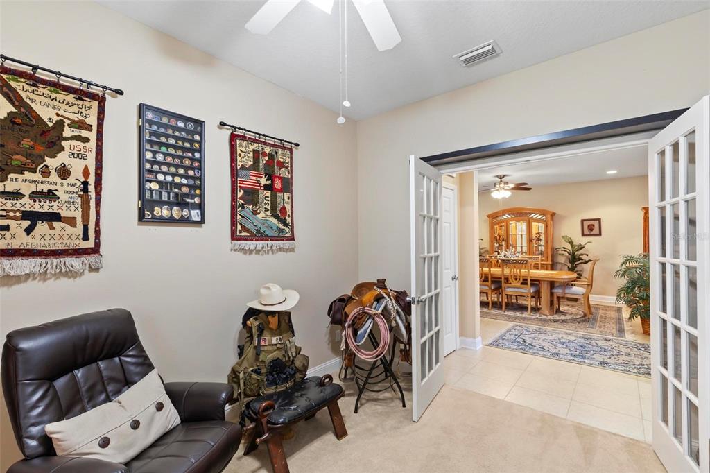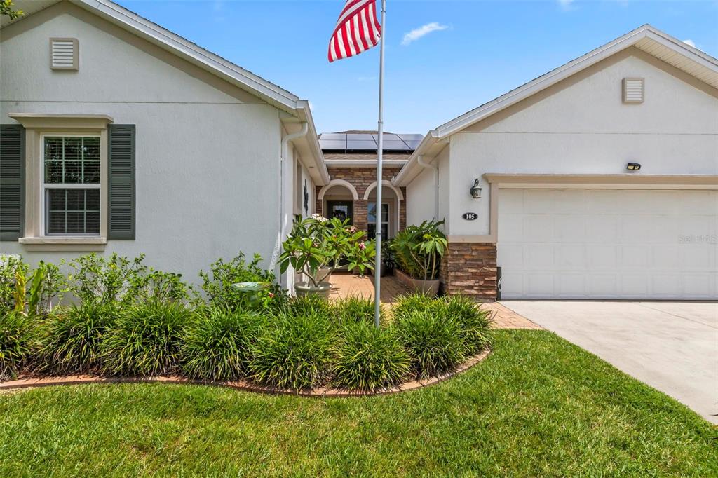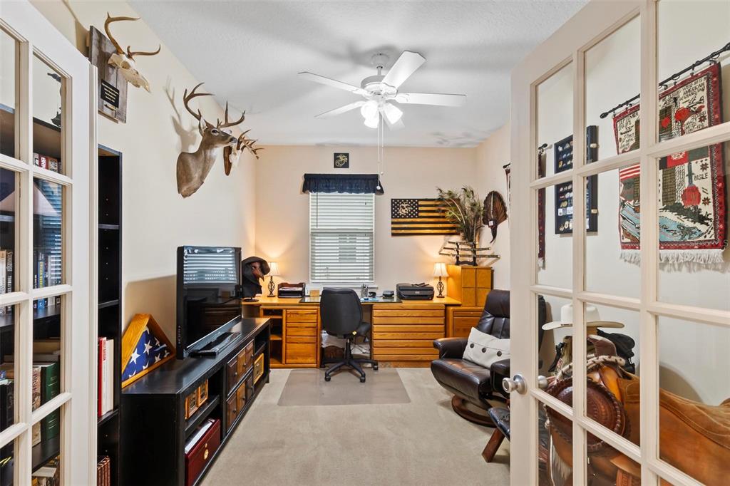 Beautifully maintained 3-bedroom, 2-bath home with dedicated office (french doors) in a desirable gated community. built in 2014, this 2,257 sq ft home sits on a scenic pond with a fully fenced yard that preserves water views. open-concept layout features tile throughout main areas and carpet in bedrooms. spacious kitchen includes granite countertops, ample cabinetry, and pond views. primary suite offers a large walk-in closet and en-suite bath. office is perfect for remote work or flex use. 3-car garage features privacy screen, split a/c unit, extensive cabinetry, overhead storage, and built-in workspace—ideal for hobbyists or professionals. additional highlights: solar panels + solar attic fan, dedicated dining space, covered outdoor area with fenced yard and water view, 3 solar tube for additional lighting in the home and garage, golf cart-friendly community. resort-style community amenities include: clubhouse, pool, fitness center, playground, dog park, and gated access (no guard). move-in ready, energy-efficient, and full of functional extras—schedule your showing today! garage is currently being used as a shop. all leather equipment and large table in garage does not convey.105 SPOONBILL, PALM COAST, FL 32164