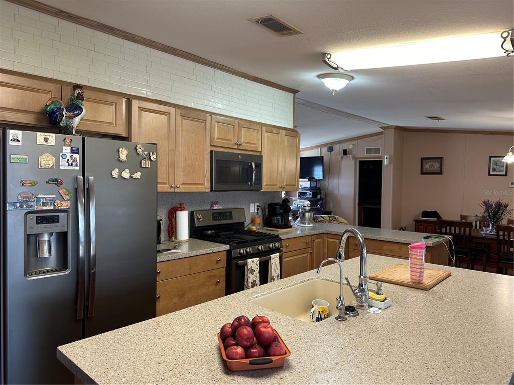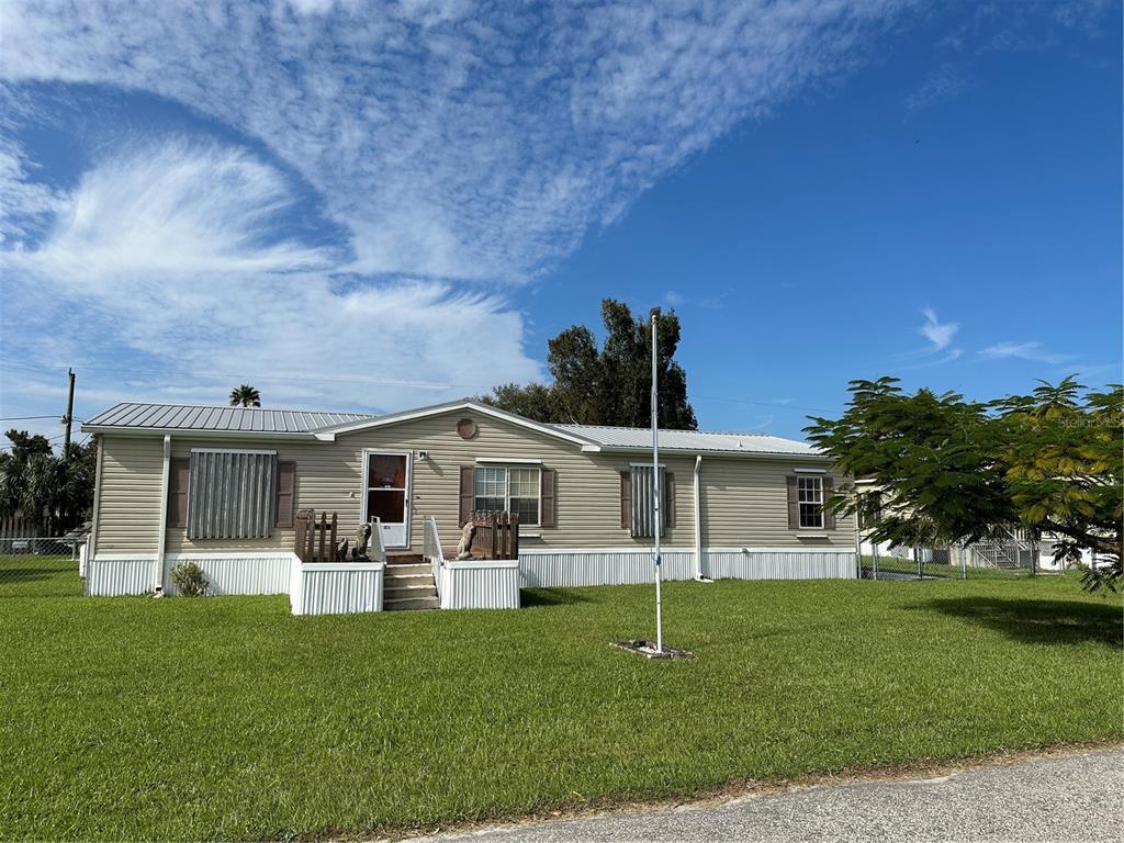 **buckhead ridge** located on 2 lots this one owner homes of merit manufactured mobile home has an open floor plan with 3 bedroom/2 full baths and a huge den. new kitchen remodeled 2024 with soft close cabinets, large pantry, solid surface countertops and a large island with an additional mini fridge and freezer. 2013 metal roof with a warranty, hot water heater on demand (tankless), solar panels installed in 2024. electric bill in the summer months ran only $39.00 a month.12x24 covered screened porch with an additional 8x8 bbq room. shed out back with electric and shelving. aluminum hurricane shutters, the back of the property is completely fenced perfect if you have pets. tons of parking space for your cars, boats, rv or any other toys that you might have. priced to sell, call for your appointment or questions today!!1054 ANDREA, OKEECHOBEE, FL 34974