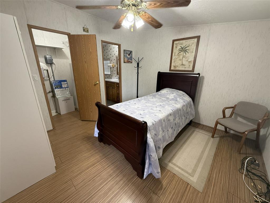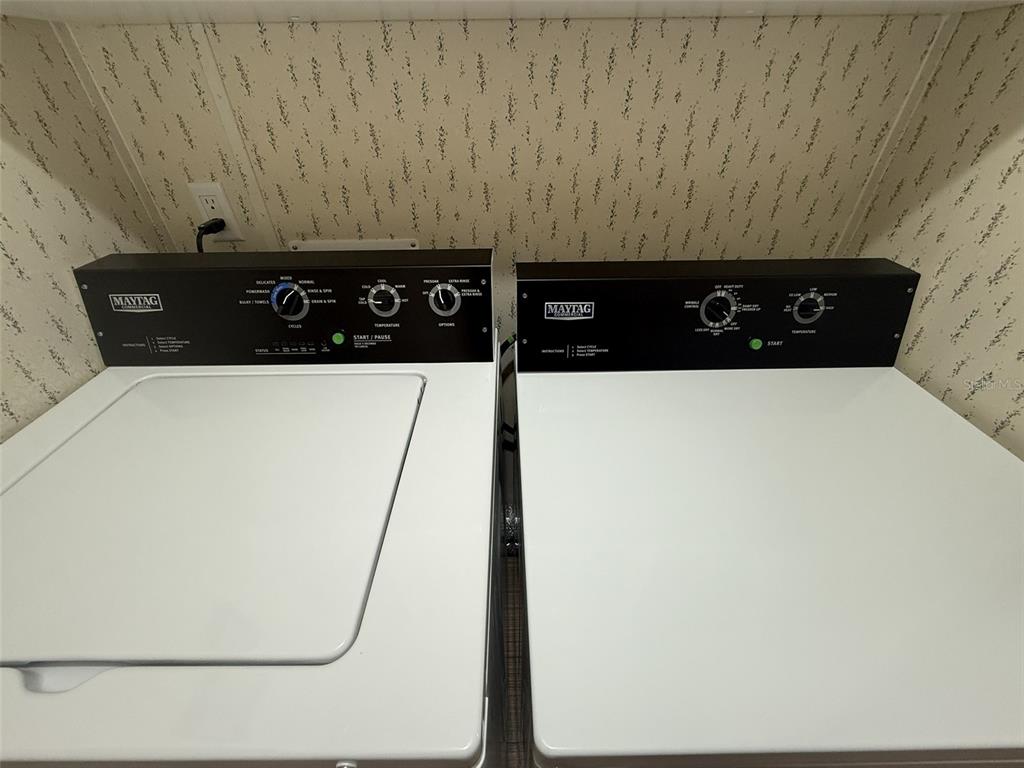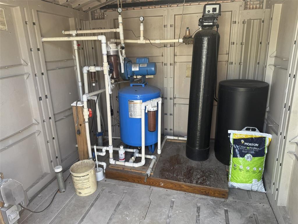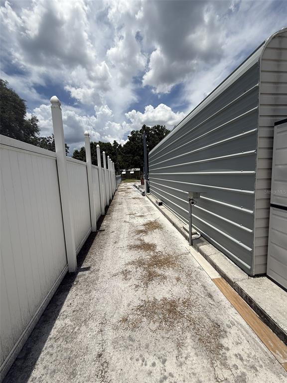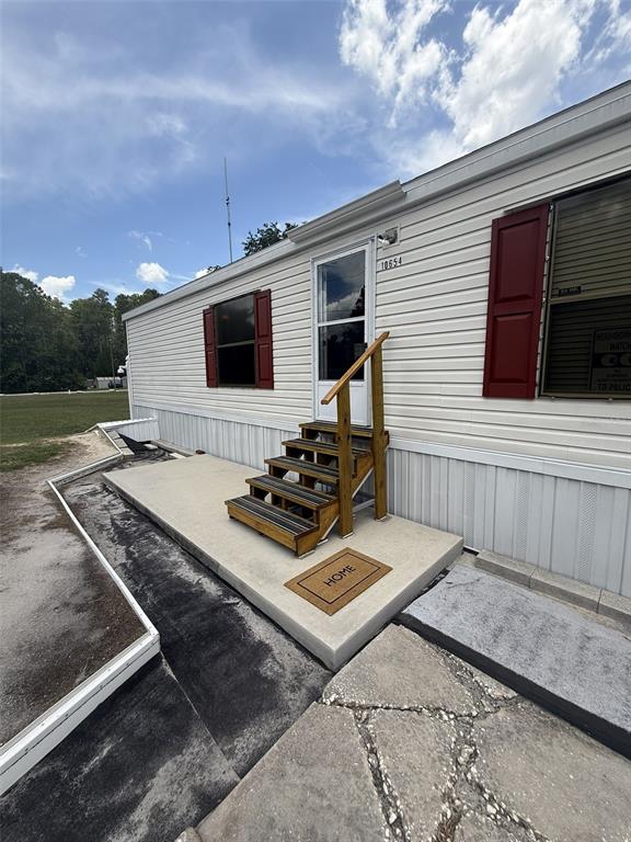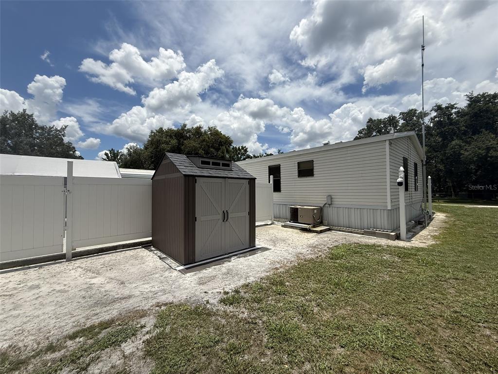 Amazing country living property! 2004 doublewide, meticulously maintained. this home is located on a private street, no hoa, no flood zone, no cdd fees! it has 2 bedrooms, 2 full baths, split plan with laminate flooring throughout and it's furnished. brand new roof in 2025, tankless water heater, maytag commercial washer & dryer, cathedral ceilings with fans. large primary bedroom has oversized walk-in closet and full bath with shower. as you walk out the back door, there is a huge concrete deck with steps down another concrete pad, a well pump shed, storage shed and a 1 car detached garage, all fenced. property is set up with 7 lorex security cameras and wired for 16, all viewable from the monitor inside and on phone. 3 of the camera pan/tilt/zoom. you have access from the front and street in back. great for storage rv, boat, work trucks, etc.10654 HOLGATE, NEW PORT RICHEY, FL 34654
