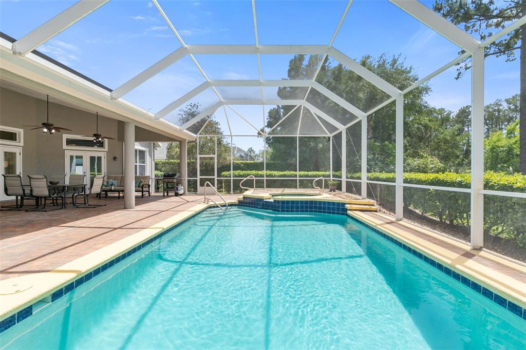 Built by custom home builder charles renick in 2004, this spectacular executive pool home was designed for entertaining. it features 3 bedrooms and 3 full baths, an office / den, gourmet kitchen, great room and dining room. did we mention the 3-car, side-entry garage? as you enter, you're greeted by soaring ceilings, an open dining area to your right, and straight ahead, a great room with two sets of french doors, opening to an inviting view of the pool and golf course. you'll be wowed by the many upgrades in this residence. the kitchen boasts a 5-burner gas range, custom cabinetry, center island, solid surface countertops, stainless steel appliances, convection oven, insta-hot water system, and large walk-in pantry. the home was designed with a split floor plan, ensuring privacy for all. the primary suite is an amazing 22 x 20 space with tray ceiling and french doors leading to the lanai and pool. it is a spacious, spa-like retreat. the expansive ensuite bath features comfort height his-and-hers vanities and a 9 x 7 roman shower with a tiled bench. the bath has been plumbed for a tub installation. the office / den has attractive french doors that bathe the room in natural light. on the north wing of the house are two guest bedrooms, two baths, and the laundry room. outside, the home sits on an impressive 125 x 180 estate lot, backing up to the golf course. a deep lanai opens to a paver pool deck, sparkling pool, gas heated spa and a grilling station plumbed for your gas grill - perfect for entertaining! no expense was spared in the construction of this home, which is situated on a private 125x180 state lot, 1/2 acre on the 1st hole of prestwick golf course. the roof is original and was installed in 2004. solar panels were added in 2016 to generate electricity and to heat the pool & spa. heat pump for the pool was replaced in 2015. a transfer switch was added to use a propane or gas generator. a new hvac was installed in 2016. plantation bay offers: (membership optional) 45 holes of golf, two clubhouses, two restaurants, ten lighted har-tru tennis courts, pickleball courts, two pools and a fitness center. you'll love the walking trails, parks and children's park. enjoy the elegance and beauty of the new $40 million founders clubhouse. you're only a few minutes to beaches, shopping, restaurants, and airports. all this can be yours at a very attractive price! don't hesitate on this one or it will be gone! all information intended to be correct, but is not warranted. all buyers should have an inspection on any property they purchase.1068 HAMPSTEAD, ORMOND BEACH, FL 32174