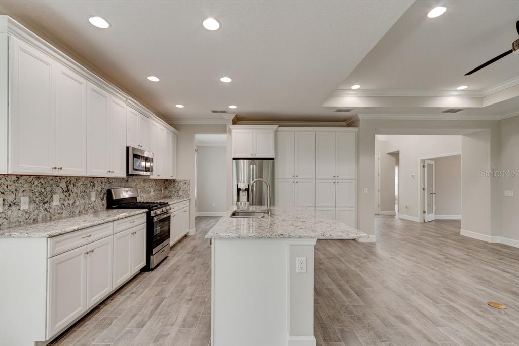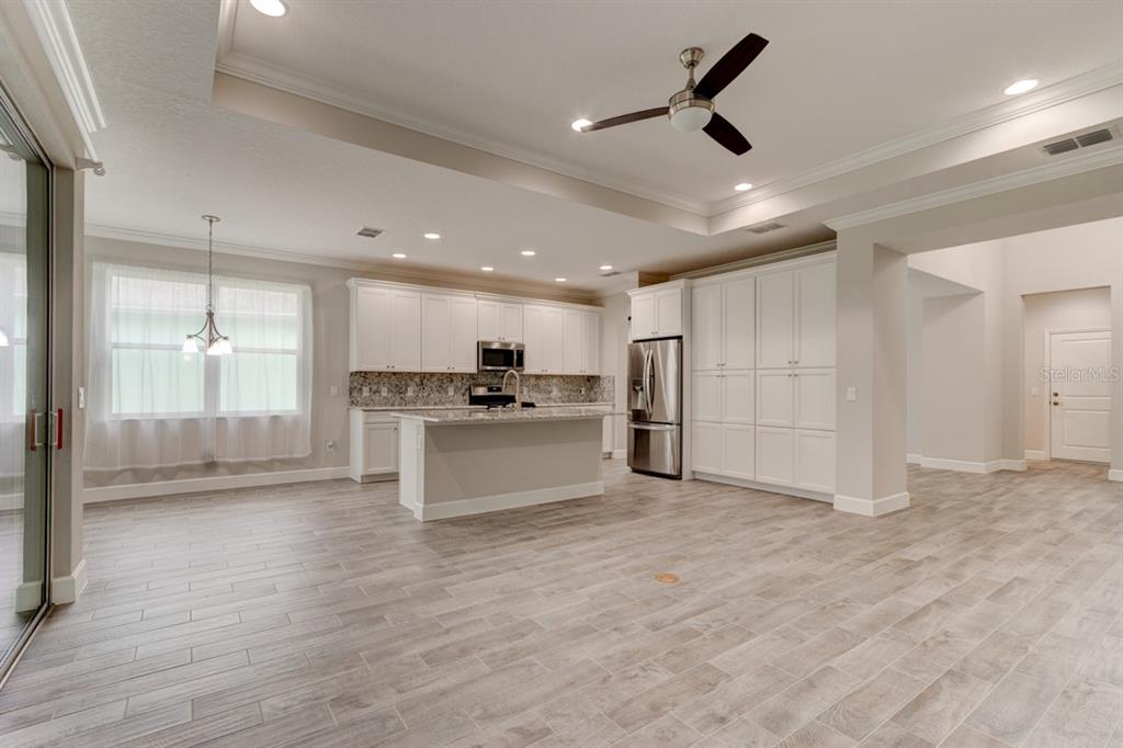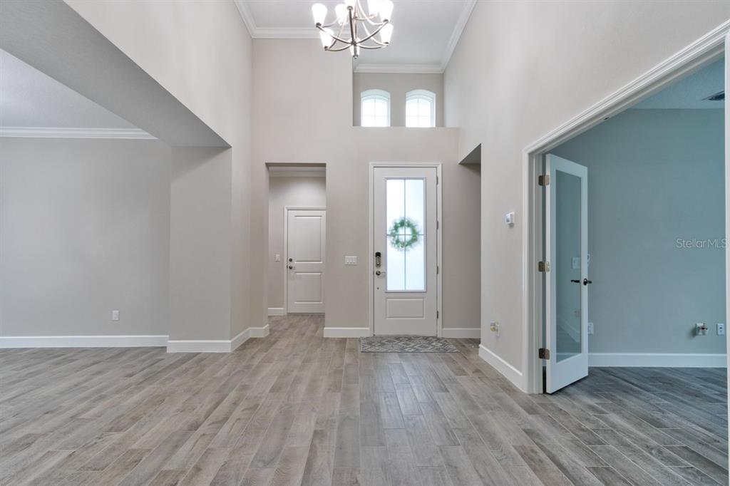 Walk-In Closet(s)Ceiling Fan(s) High Ceilings Open Floorplan Solid Surface CountersCrown Molding Pest Guard SystemExterior Features: