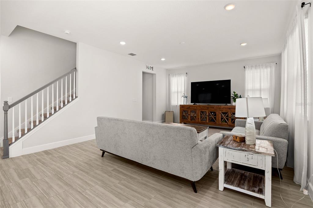 Large modern 4-bedroom, 3-bathroom house that could be used as multi-generational living. as you enter into this newer built home you will find a bedroom and bathroom located on the main floor. an open concept kitchen that flows into the spacious living room. also, off the kitchen you will find a large space for a dining room table. as you walk up the stairs there is a large bonus/entertainment space with an upstairs laundry room. enjoy the spacious master bedroom suite and bathroom, two additional bedrooms and third bathroom on the second floor of the home. step outside to the completely fenced back yard and enjoy relaxing on your covered patio. plenty space for pets to run or additional outdoor activities. close proximity to downtown deland where you can find shopping, restaurants and entertainment.1073 RIV OTTER, DELAND, FL 32720