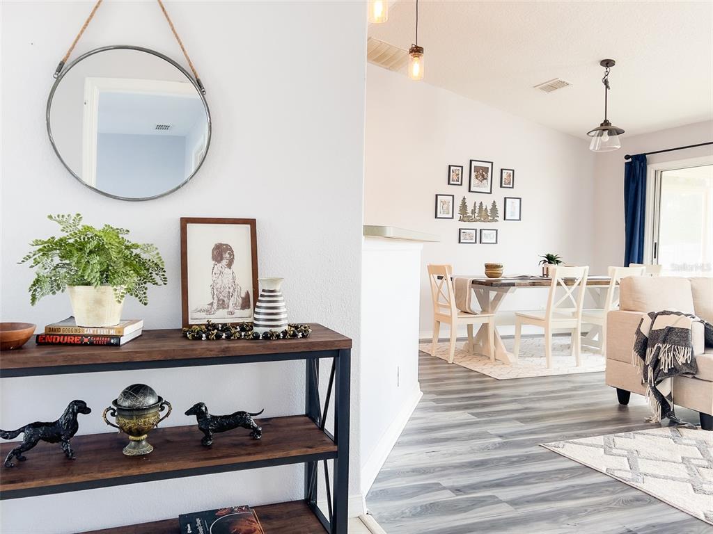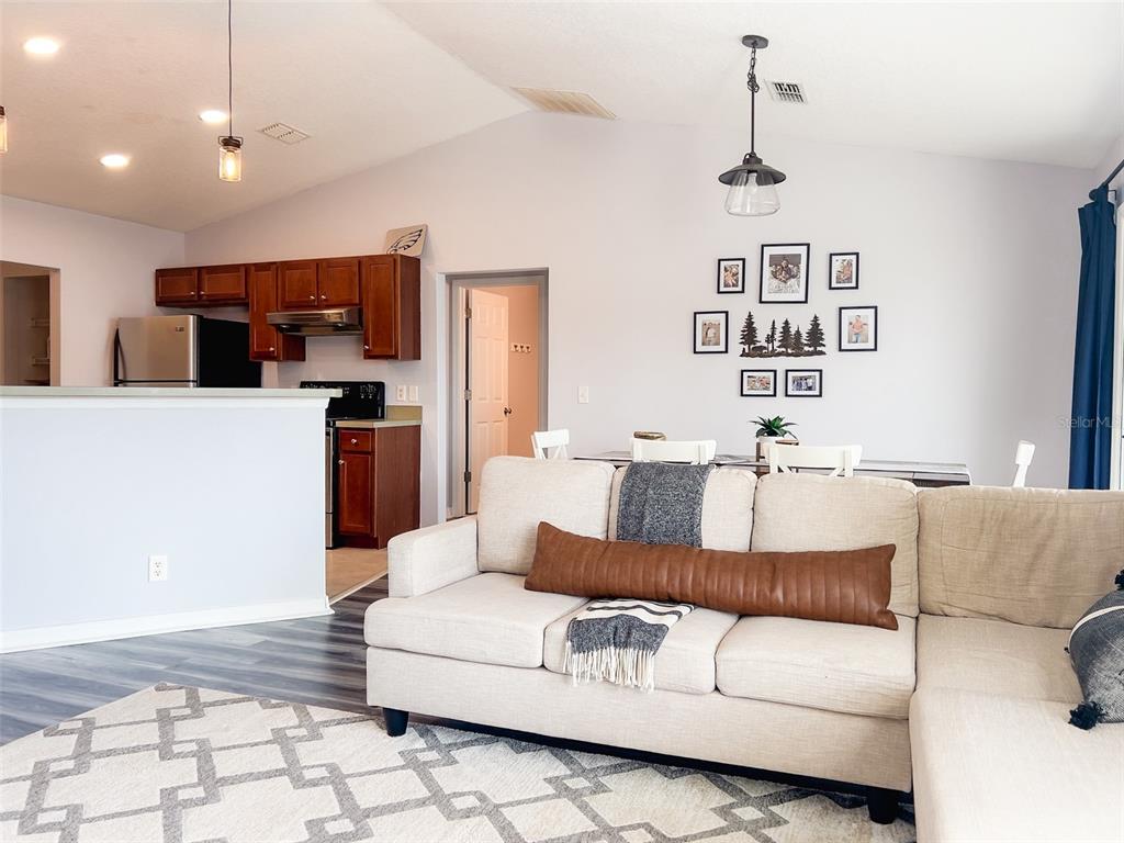 Welcome to this charming home on .46 acres! two lots ... within the first steps through the front door you will appreciate the seamless blend of comfort and style, featuring a tiled foyer that leads to a thoughtfully designed layout with a split plan for privacy. the comfortable primary bedroom boasts large double-pane windows and an expansive primary bathroom with double sinks, double closets and a separate linen closet. the inviting open-concept living area showcases vaulted ceilings and abundant natural light, connecting the living, dining, and well-appointed kitchen with upgraded maple cabinets. two additional bedrooms are located on the opposite side of the house, sharing a bathroom with tiled shower/tub. enjoy outdoor living on the lovely 10 x 12 screened porch with a ceiling fan under a truss roof, overlooking a fenced backyard with an extra lot for potential expansion. with a security system and beautiful stone landscaping, this home is perfect for families or anyone seeking a spacious, well-designed living space. need space for in-laws or family? the extra lot is there for you to build the next chapter! just a short drive from the famous st. john’s river and the quaint town of welaka, which offers a boat ramp and small-town conveniences, don’t miss this opportunity to make it your own! great investment for your winter retreat or full time life in the quiet.108 VILLAGE DR, WELAKA, FL 32193