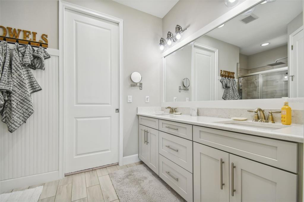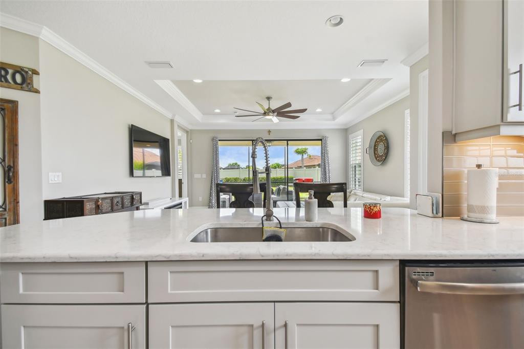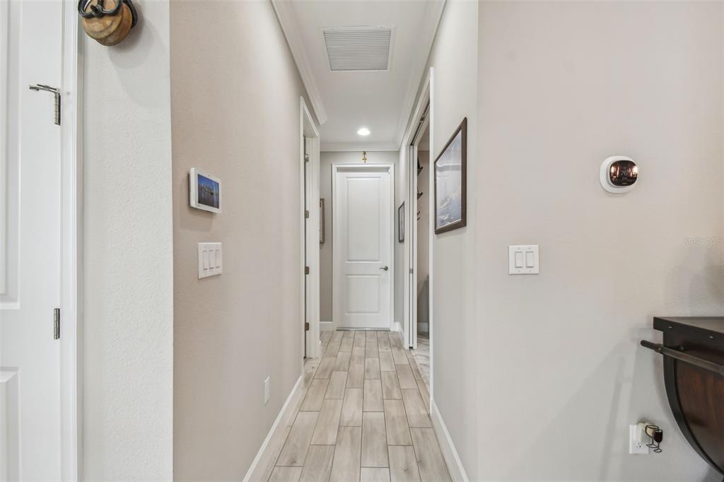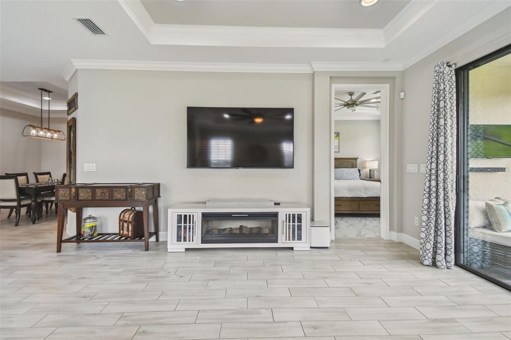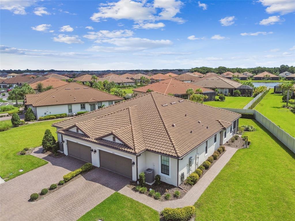 Your perfect home is located in the highly desirable gated neighborhood of esplanade in the master planned community of artisan lakes. this nearly new home is move in ready with a fantastic floor plan and great flow. bright and spacious, this 2 bedroom, 2.5 bath, 1,582 sq. ft. home with 2 car garage, was built for family fun and entertaining. upon entering this beautiful home, your eyes are drawn to the high tray ceilings with crown molding, 8' ft doors, and an abundance of natural light that accentuates the great room, dining room, and kitchen. the chef's kitchen is the nucleus of this beautiful home. it features high end stainless steel appliances, breakfast bar, 42" grey shaker cabinets with crown molding, high end quartz countertops, backsplash, and closet pantry. the dining room perfectly complements the well designed kitchen. there is a large study with 8' pocket doors, perfectly suited for a home office. the master retreat is spacious with high ceilings, plenty of natural light, and will comfortably fit a king-sized bedroom set. the master retreat features a large walk in closet and en-suite featuring quartz countertops, dual vanities, walk-in shower, and private water closet. the secondary bedroom offers generous accommodations. it features an en-suite with single vanity, quartz countertop, and a tub/shower combo. there's a very functional laundry room with laundry tub and full cabines. a large screened lanai on this desirable end unit provides more privacy than you would ever expect. this home comes complete with a tile roof, tankless water heater and brick paver driveway. lawn maintenance, cable & internet are included in the hoa fee. esplanade of artisan lakes has some of the finest resort-style amenities available in the tampa bay area. residents have access to an array of active and leisure activities: heated resort-style pool, full fitness center with large group fitness room, spa treatments rooms, multi-purpose room, café kitchen, tennis, pickle ball, pet park, playground, walking paths, bbq picnic area, and a fire pit. esplanade at artisan lakes has an established lifestyle/events program directed by a full time, on site lifestyle manager. esplanade at artisan lakes is conveniently located close to schools, restaurants, shopping, recreation, and entertainment. it is minutes to i-75, i-275, us hwy 301 & us hwy 41 and is close to bradenton/sarasota/st. petersburg/gulf beaches. downtown tampa, usf, port tampa bay, macdill afb are all a short drive away. visit the esplanade artisan lakes website to see more amenities of this amazing community.Villa 2 bedrooms - ARTISAN LAKES ESPLANADE PH IV for Sale