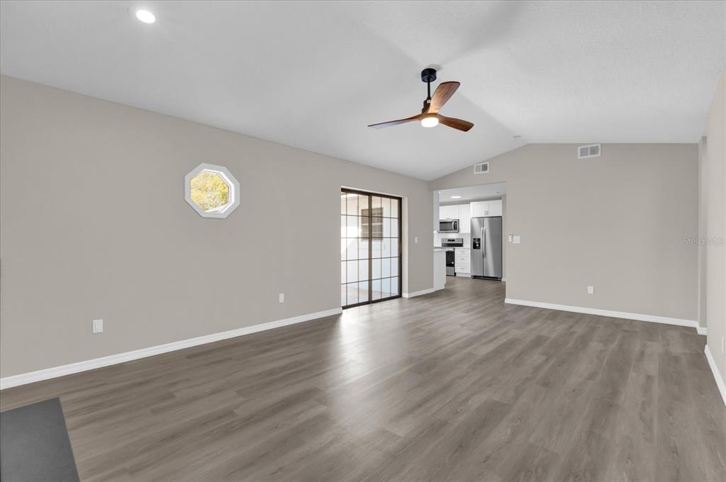 Walk-In Closet(s)Ceiling Fan(s) High Ceilings Living Room/Dining Room Combo Stone Counters Thermostat Open Floorplan Primary Bedroom Main Floor Kitchen/Family Room ComboExterior Features: