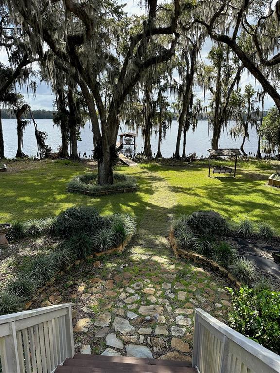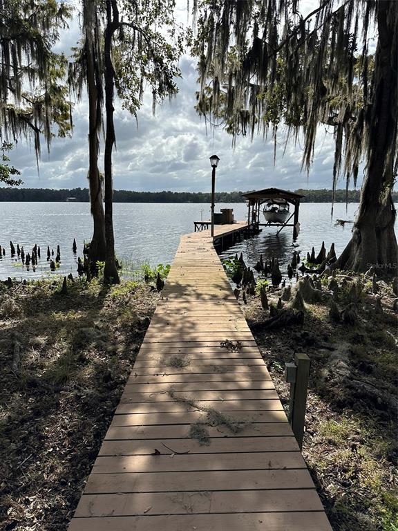Lakefront living at it's finest on this fully recreational private lake! situated on 1.25 acres with 150' lake front on redwater lake with a doc and a boat house with a lift. step right off the dock or boat and start preparing that fresh catch at the fish cleaning area! open the doors to this beautiful immaculately maintained 3 bedroom/2 bath home with just under 2000 sq' ft. of living space that offers a panoramic view of the lake through 3 sets of french doors and large windows for a light and airy feeling. a chef's kitchen with a 12' long bar top for entertaining with a copy fireplace for enjoying those cool evenings. enjoy the screened enclosed patio that leads to a large open deck with a retractable awning. the manicured lawn with fruit trees is fenced on 3 sides which has a lake side storage building and a new (24x36) building on a concrete slab for plenty of storage space for the toys and a oversized 2 car garage with auto openers. bring your fishing pole and start enjoying the lake life.109 CYPRESS, HAWTHORNE, FL 32640