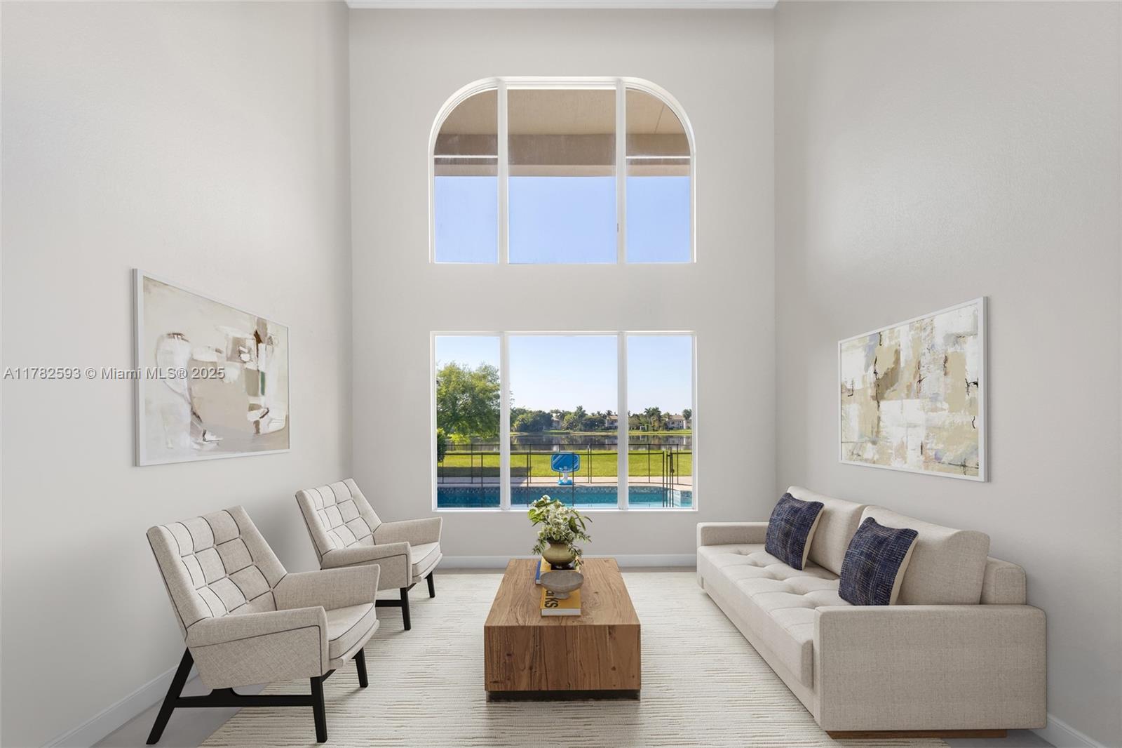 This stunning waterfront estate is situated on one of long lake ranches most impressive lake front lots with nearly an acre of land & spectacular wide water views. the 5 beds + office layout offers soaring ceilings, a sleek open layout, chef’s kitchen with stainless appliances, and designer finishes. indulge in your own private resort featuring a private movie theater, putting green, resort-style pool, and covered summer kitchen—set against tranquil water views. the grand primary suite features a spa-like bath and custom closets. long lake ranches in davie is a 24-hour private gated community with top tier amenities such as state-of-the-art fitness center, beautiful club house, tennis, pickleball, and basketball courts across from tree tops park with nature and horseback trails.10972 PINE LODGE TRL, DAVIE, FL 33328