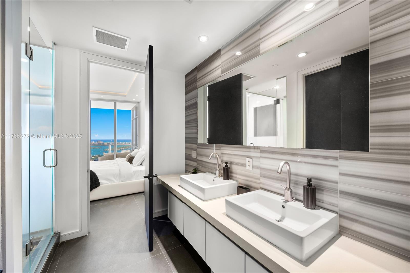 Rarely available waterfront 03-line unit at marquis residences. this high-floor flow-through residence features a private elevator, 2 spacious bedrooms, floor-to-ceiling windows, an oversized balcony, & spectacular panoramic water & city views! enjoy a chef’s kitchen with viking appliances, custom black porcelain tile floors, custom closets, & electric shades. indulge in world-class amenities: two pools, a state-of-the-art fitness center & spa, 24-hour concierge & valet, plus the 5-star me hotel, stk restaurant & bar. unbeatable location! steps from top shopping, dining, nightlife, parks, museums, the performing arts center & kaseya center.1100 BISCAYNE BLVD #5303, MIAMI, FL 33132