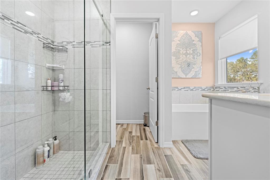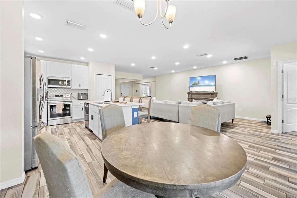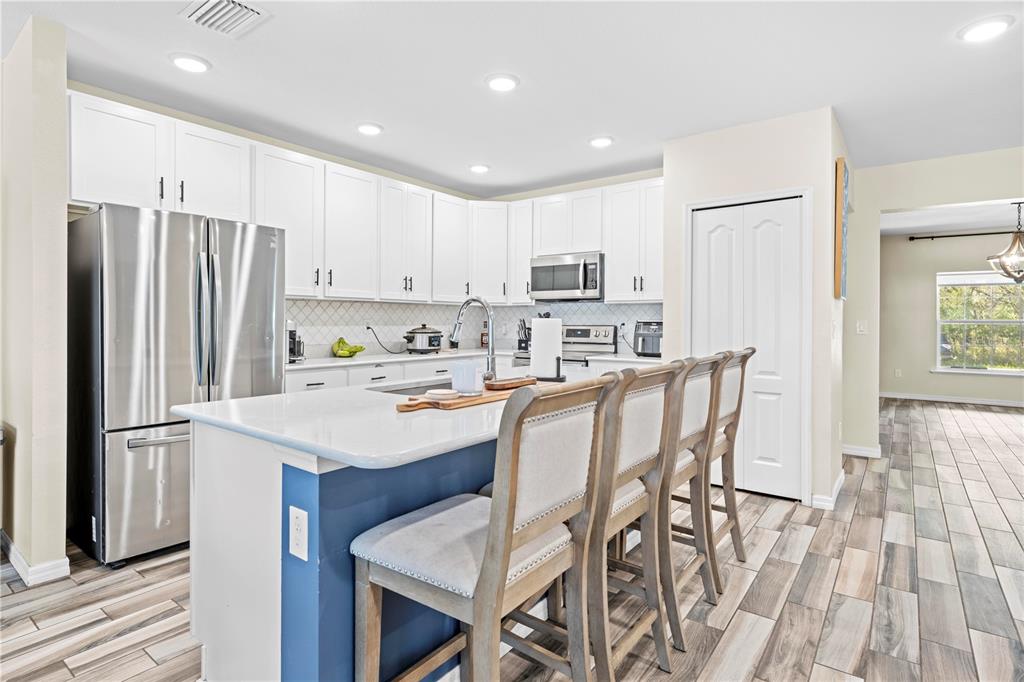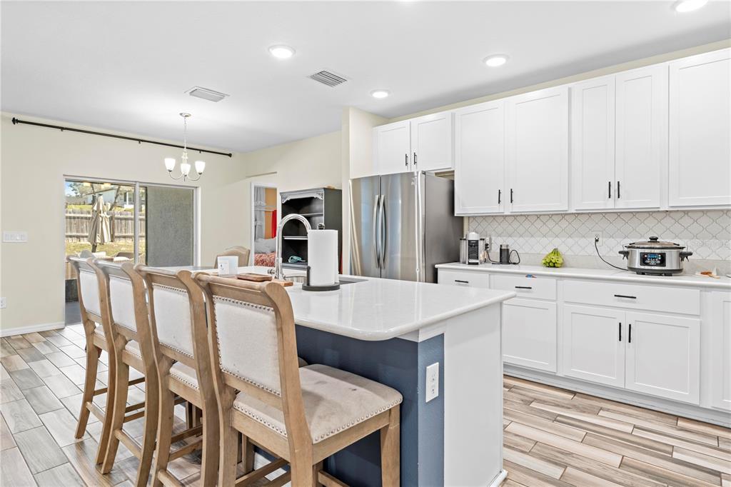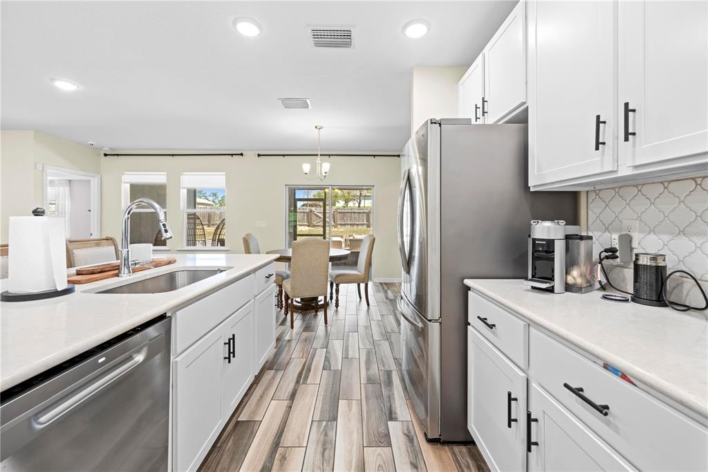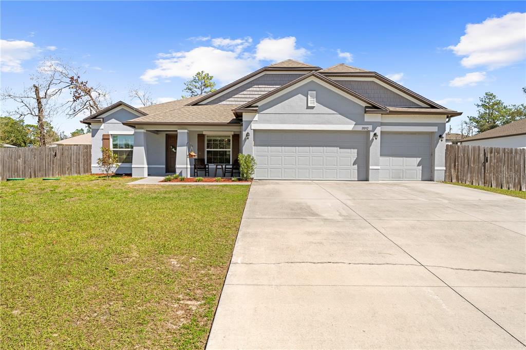 Modern 4-bedroom home in weeki wachee – built in 2021! welcome to this stunning 4-bedroom, 3-bathroom home, built in 2021 and nestled on a spacious half-acre lot in weeki wachee. with a well-designed split floor plan, this home features wood-look ceramic tile flooring throughout the main living areas, while the bedrooms offer cozy carpeting. upon entry, you’ll find an office/den to the left, perfect for remote work or a quiet retreat. the separate dining room flows seamlessly into the open-concept main living space, making it ideal for entertaining. the kitchen is a chef’s dream, featuring stainless steel appliances, an eat-in kitchen bar, and plenty of counter space for meal prep. the master suite offers a private escape, complete with dual sinks, a walk-in shower, and a soaking tub. the screened lanai leads to a paver patio with a built-in fire pit, perfect for outdoor gatherings. the fully fenced backyard provides privacy and includes a separate dog run, while additional space behind the privacy fence allows for a shed or trailer parking. an indoor laundry room is conveniently located just off the 3 car garage, adding extra storage and functionality. don’t miss this move-in-ready home with plenty of space inside and out!11092 JENNY WREN, WEEKI WACHEE, FL 34614