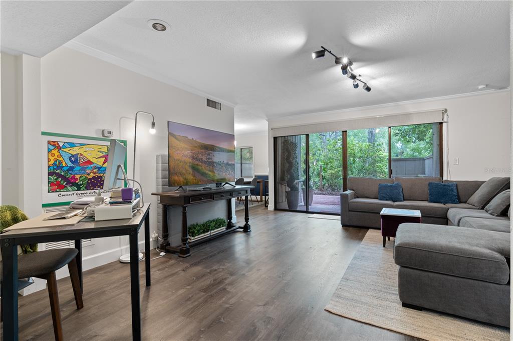 Outstanding condo in the springs. taxes are low, and hoa fees include water/sewer, a huge pool just steps away, exterior maintenance, and insurance, 24 hour manned and gated entrance, the beautiful spring and recreation area and more! beautifully updated 2-bedroom, 2-bath ground-floor condo, available furnished or unfurnished. no stairs and easy to lock up and go. whether you're looking for a full-time residence, a second home, or a quiet retreat, this condo in the guard-gated community of the springs has what you want. easy to stop by on short notice! inside, it’s light and bright, with peaceful views of nature from every window — vinyl plank flooring, a cozy brick accent wall, crown molding, upgraded lighting, and a motorized shade in the living area. the kitchen includes recessed lighting and a well-planned layout. the washer and dryer are included, along with a brand new water heater. freshly painted throughout, the home also offers two patios: a private one off the primary suite and a spacious tiled patio with extended pavers off the living room — easy to let your dogs out or relax under starry skies or sunrise mornings. the springs is truly a paradise to call home, with scenic walking trails, rivers, wooden bridges, horse stables, and a natural spring-fed swimming area. great schools - sabal point, rock lake, and lyman and just minutes from i-4, amc theater, cranes roost, mall, and quick drive to downtown especially with i4 expressway. enjoy a one-of-a-kind setting in a private and gated, serene, nature-filled community.111 CROWN OAKS #101, LONGWOOD, FL 32779