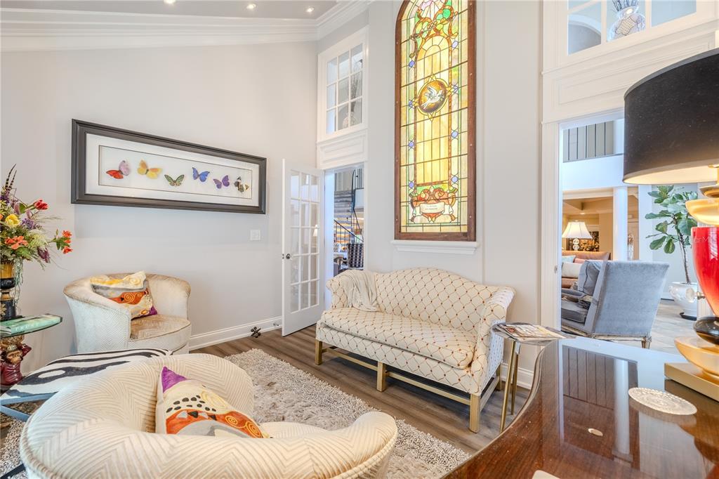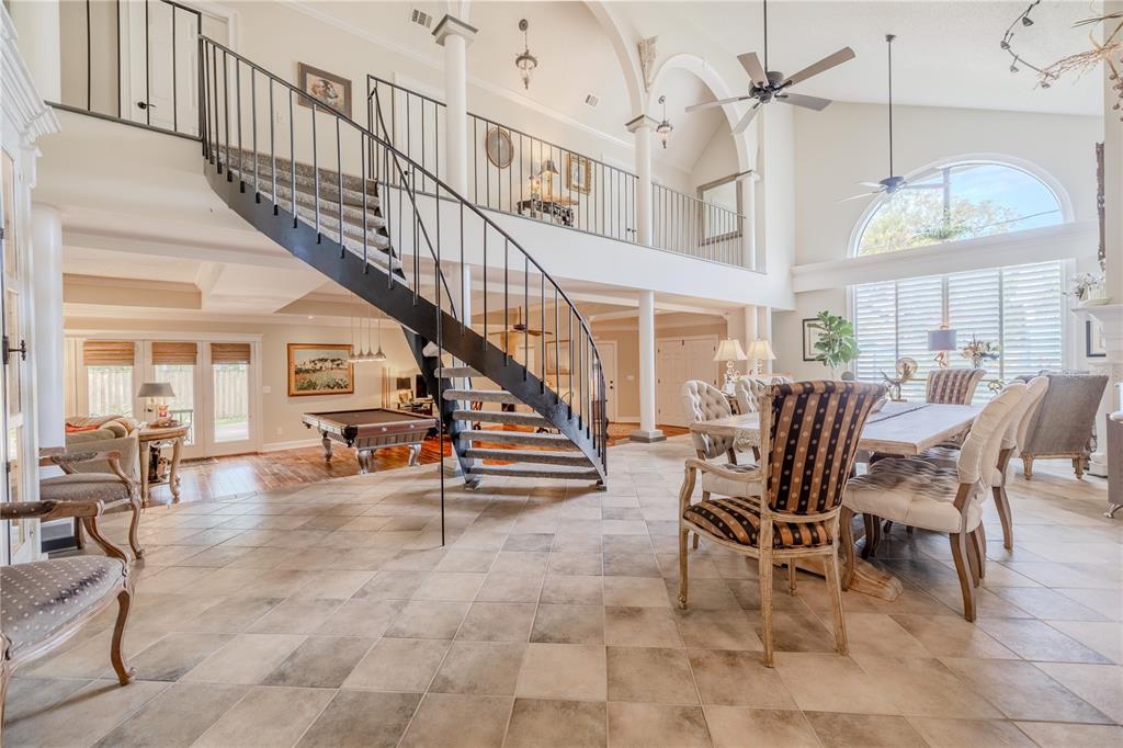 Vaulted Ceiling(s) High Ceilings Stone Counters Open Floorplan Window TreatmentsCrown MoldingCathedral Ceiling(s) Central VacuumExterior Features: