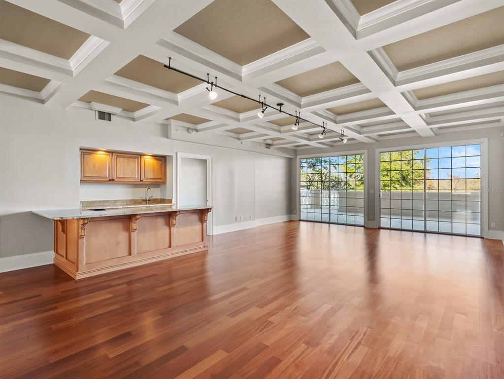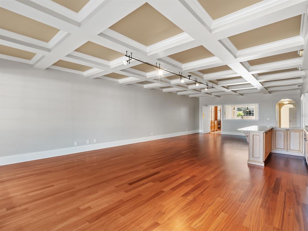 Wet BarBuilt-in Features Walk-In Closet(s)Ceiling Fan(s) Eating Space In Kitchen Living Room/Dining Room Combo Stone Counters Open Floorplan Solid Wood CabinetsCrown Molding Primary Bedroom Main Floor Coffered Ceiling(s)Exterior Features: