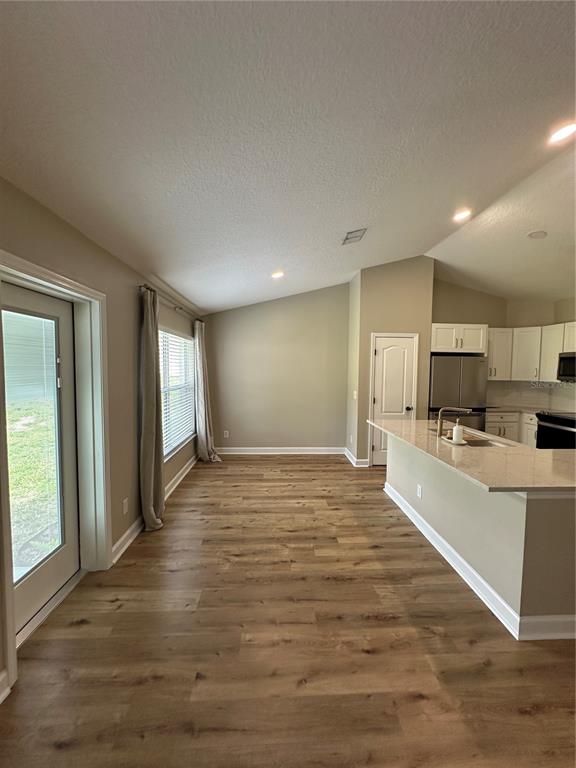 Split Bedroom Walk-In Closet(s) Vaulted Ceiling(s)Ceiling Fan(s) Eating Space In Kitchen High Ceilings Stone Counters Open Floorplan Window Treatments Solid Surface CountersExterior Features: