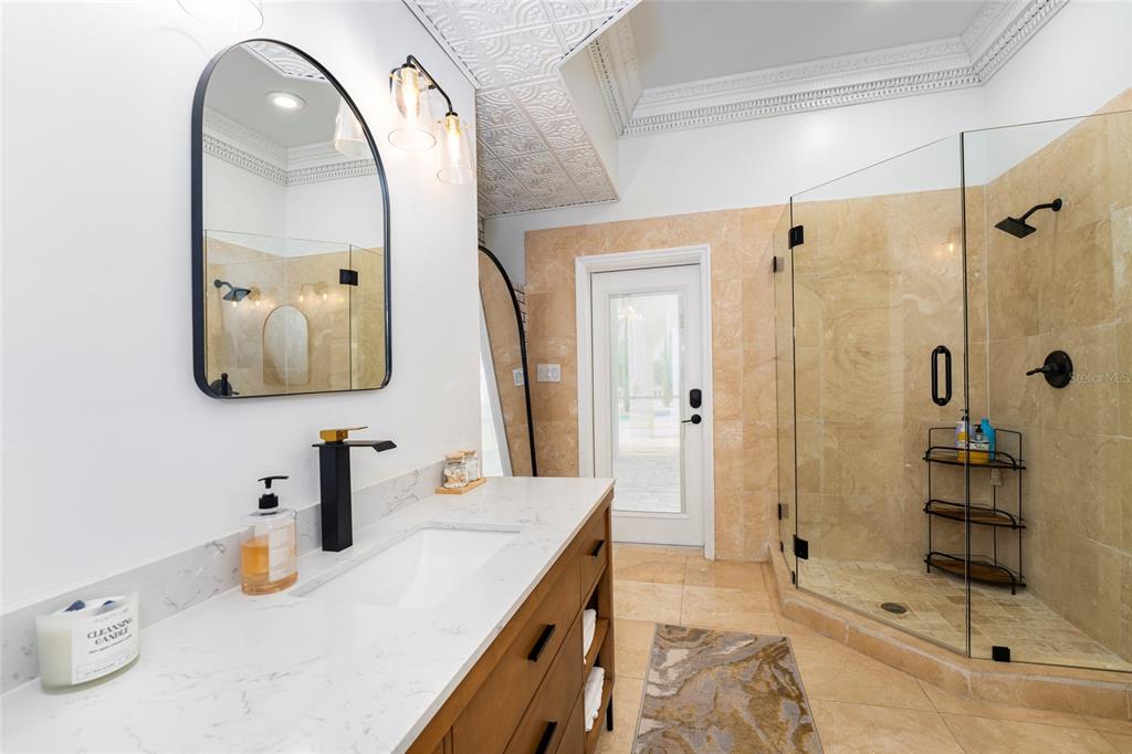Built-in Features Walk-In Closet(s)Ceiling Fan(s) High Ceilings Solid Wood CabinetsCrown Molding Skylight(s) Central VacuumExterior Features: