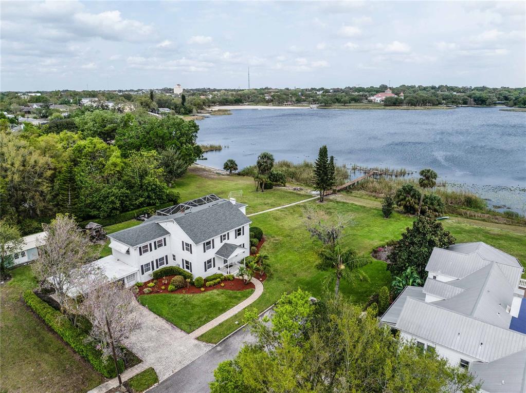 Gorgeous lakefront historic mansion on sparkling lake eva in haines city, conveniently located between tampa and orlando and near interstate 4 and highway 27 in wonderful central florida! this stunning and well-cared for property has only had two owners since 1934! the beautiful home has a foyer with a grand staircase, a formal living room with fireplace, formal dining room with built-ins and a stunning chandelier, half-bath under the stairs, spacious family room with views galore, a large updated kitchen with stainless appliances including a double oven, wine refrigerator, an island, and an eat-in area overlooking the expansive screened porch with pecky cypress ceiling, a full hood for an outdoor kitchen, and screened pavered patio around a saltwater pool with shallows for your florida living. the upstairs has four bedrooms and three full baths (with remarkably preserved original tiles), including the huge primary bedroom with en-suite bath, large second bedroom, two additional bedrooms with original hardwood floors, plenty of closet space, and a cedar-lined laundry closet. even more amazing, the downstairs has a mother-in-law suite with a separate entry, living area, bedroom, full bath, and refrigerator with space and wiring/plumbing for a full kitchenette! call to see this amazing property with no hoa and lake eva park and all of its amenities - picnicking, basketball, tennis, community center, bandshell, art center, playgrounds, and walking paths directly across the lake. enjoy the holiday fireworks from your own yard!112 E GRAHAM PARK, HAINES CITY, FL 33844