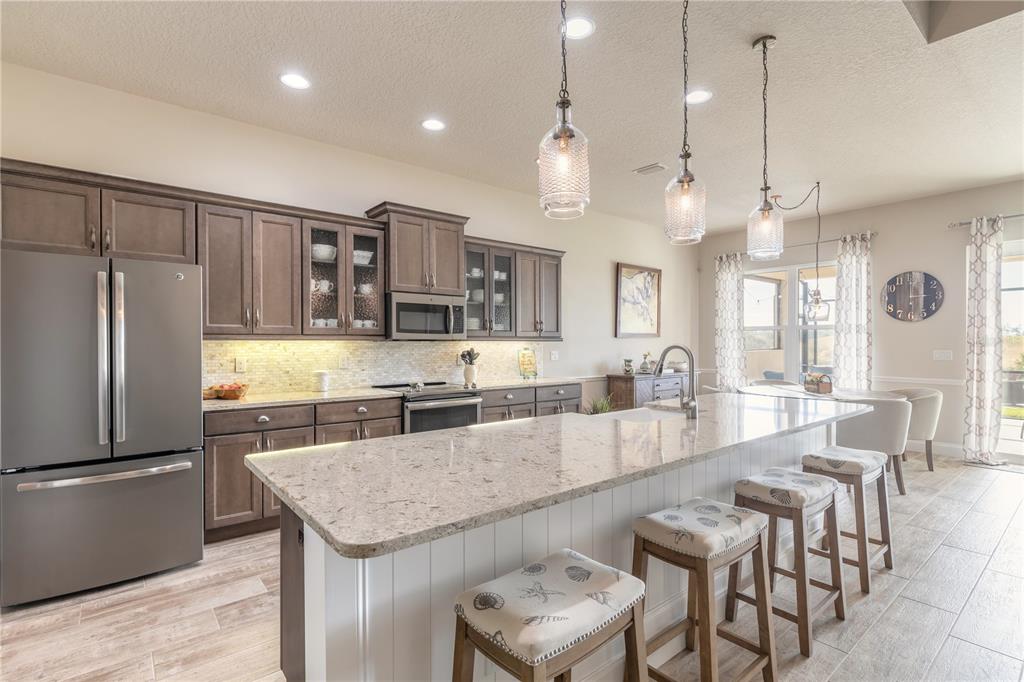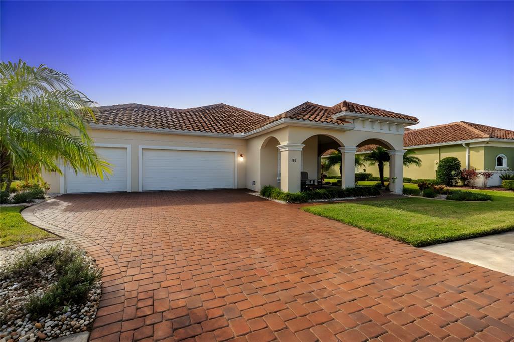 Welcome to portofino reserve located within venetian bay, an exclusive gated golf course community in the heart of new smyrna beach. this custom built paytas home offers many upgrades and luxurious finishes. architecturally appealing mediterranean exterior with a covered entryway and a spacious 3 car garage. the kitchen features a large center island overlooking the great room, rich wood cabinetry, designer backsplash, and matte ss appliances. it also boasts a built in bar area with ample storage and wine cooler/beverage center. the great room features a wood coffered ceiling that adds dimension and style with a stacked stone accent wall with built-in electric fireplace. enter the primary suite that has french doors accessing the beautiful outdoor area, an extended walk-in closet, double sink vanity, and oversized shower. while the parlor is currently being utilized as a home gym it is also perfect for home office space, play area, library, or den. the tranquility of the backyard view is truly captivating! other notable features and upgrades include an extended screened lanai, landscape curbing, plantation shutters, gutters, wood plank tile, hurricane shutters, laundry room cabinetry and sink, and so much more! venetian bay is resort living at its finest featuring the golf & country club, town center with world class spa, trendy restaurants, coffee shop, salon, and fitness center. lots of community events including food truck mondays and a weekly farmers market, miles of bike trails, pickleball courts, and a playground as well. all sizes are approx. all information deemed accurate but cannot be guaranteed. call for your private showing today!112 PORTOFINO, NEW SMYRNA BEACH, FL 32168