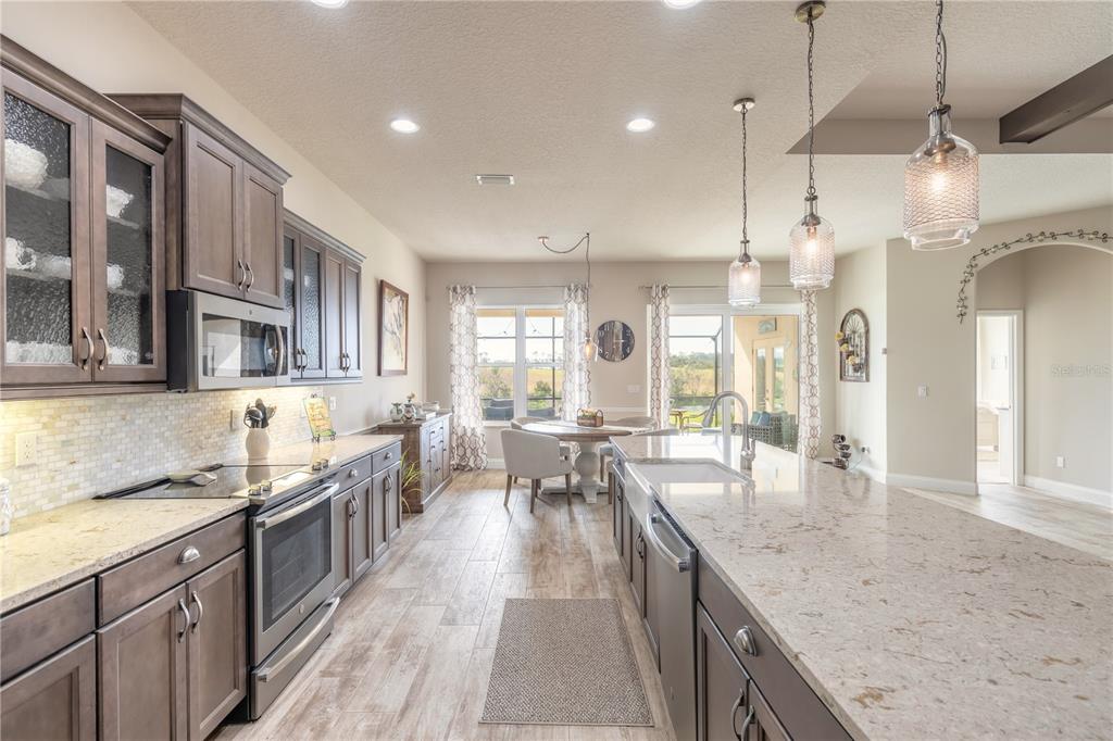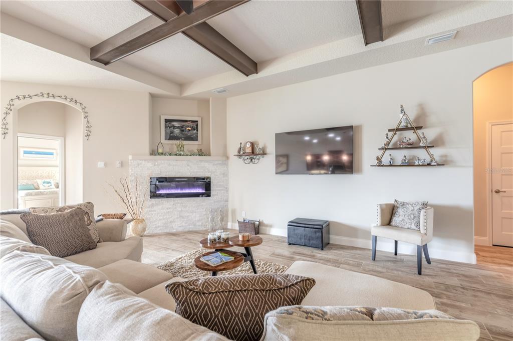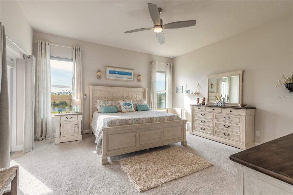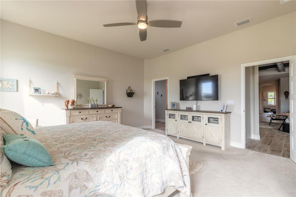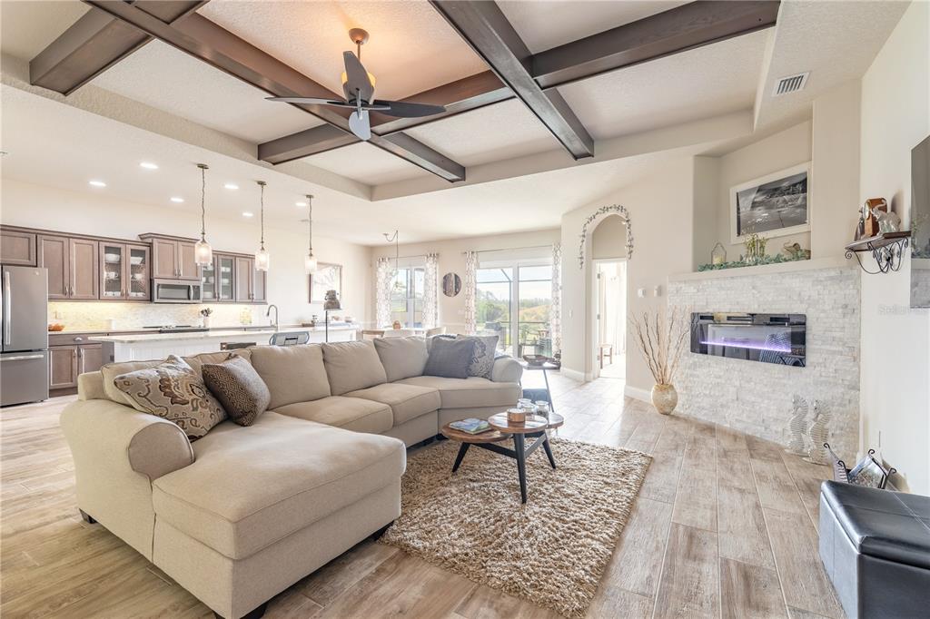 Wet Bar Walk-In Closet(s)Ceiling Fan(s) High Ceilings Thermostat Open Floorplan Window Treatments Solid Surface Counters Primary Bedroom Main Floor Kitchen/Family Room Combo Coffered Ceiling(s) Chair RailExterior Features:
