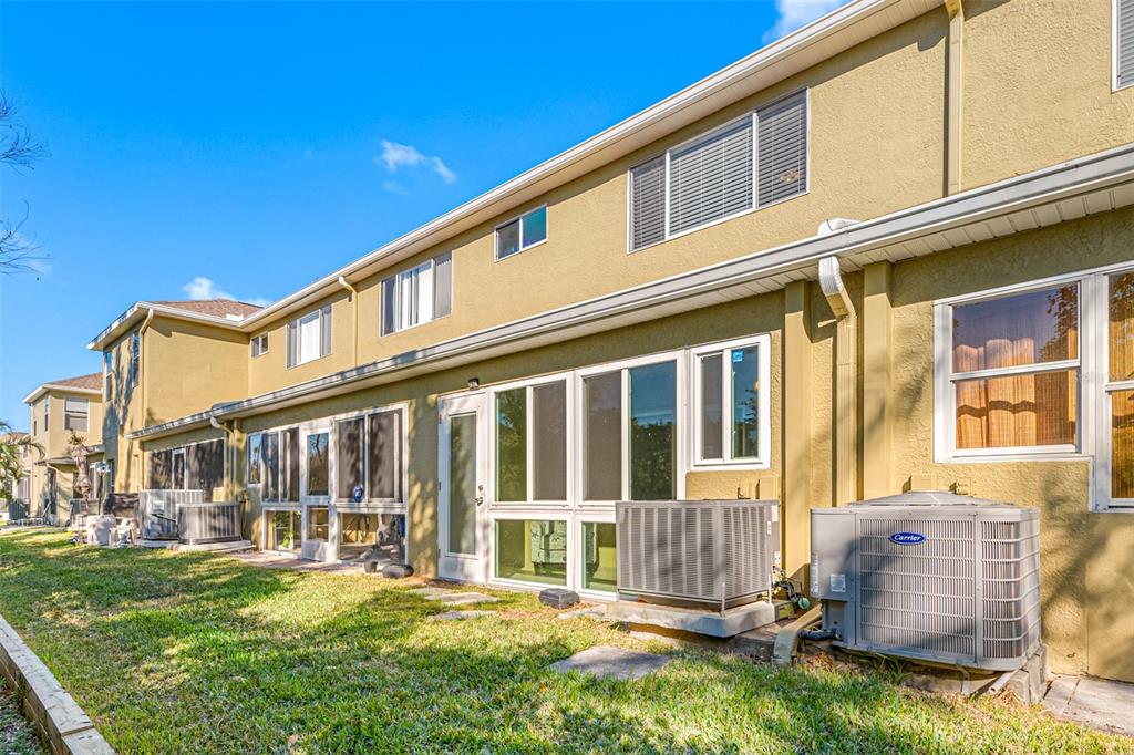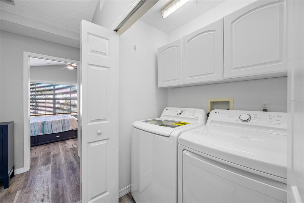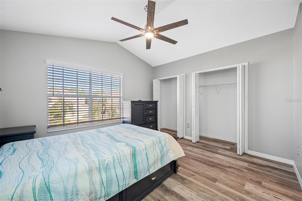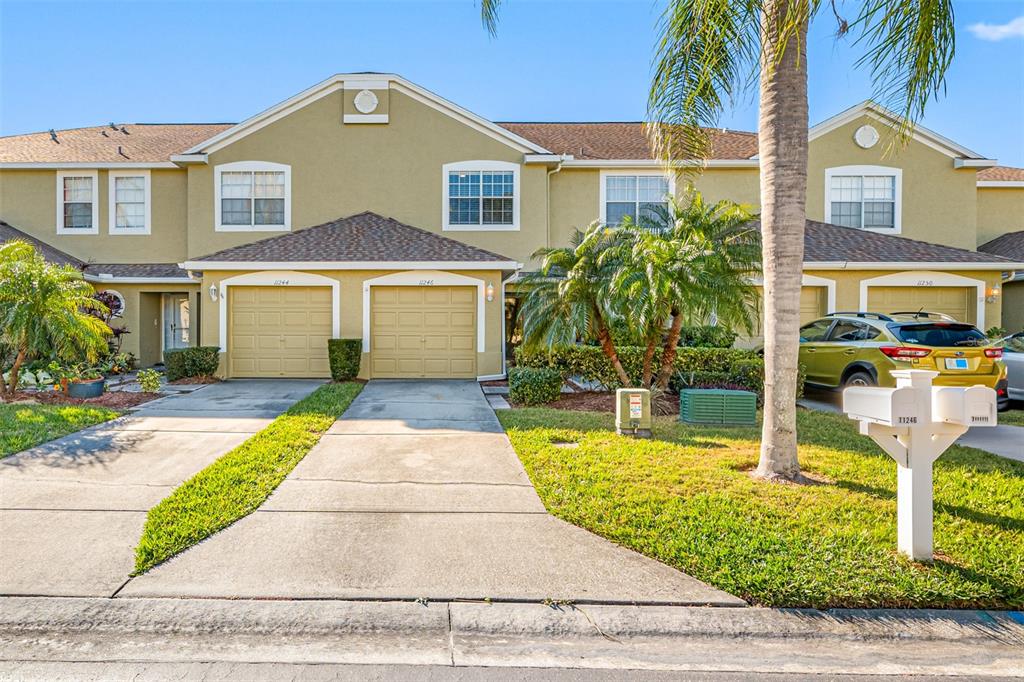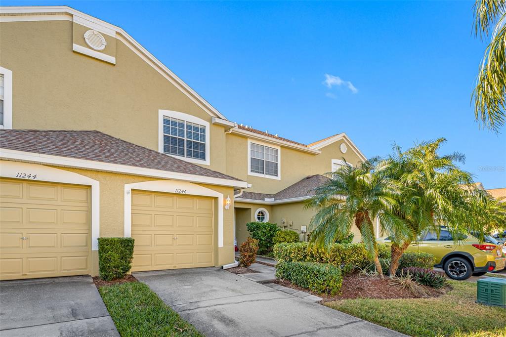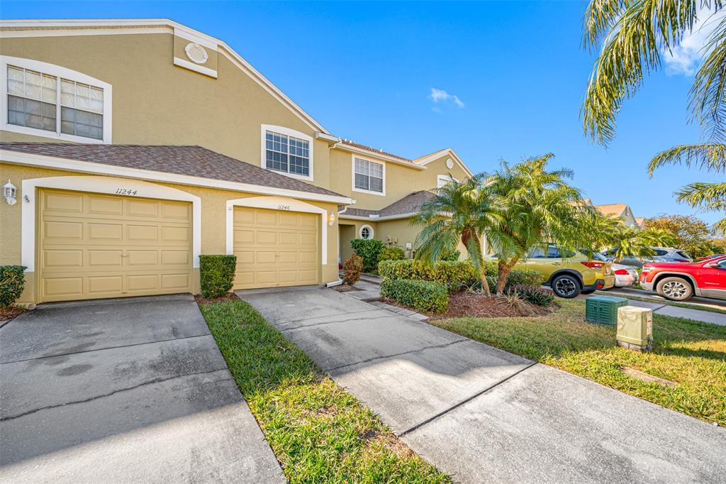 This stunning 2-bedroom, 2 1/2-bath home features an attached 1-car garage equipped with a transfer switch for a generator. recently upgraded with brand new vinyl flooring (october 2024) throughout, the home boasts a fully renovated kitchen with granite countertops and stainless steel appliances. a convenient half bath is located just off the kitchen. the open-concept living and dining areas are perfect for entertaining. at the same time, a newly built four-season room with hurricane windows and a door adds 153 square feet of additional space, ideal for a home office or third bedroom. upstairs, you'll find two spacious master suites. the first suite has vaulted ceilings, a large tiled shower, and a generous walk-in closet. the second suite offers high ceilings and an en-suite bath with a shower. a brand new (november 2024) lg washer and dryer are conveniently located in the second-floor laundry room. this remarkable home has new furniture for the dining room, living room, and master bedroom, which are negotiable. the roof was replaced in 2020. the hoa is one of the lowest in the area at just $410/month, covering garbage, recycling, basic cable, internet, and lawn care. the community offers fantastic amenities, including a large heated and chilled pool, a clubhouse with a new gym, locker rooms, a game room, and a reading room. the clubhouse can be rented for family events for a nominal fee, and residents can have multiple grilling areas. additional features include a private pond with a beautiful fountain and a serene walking path, perfect for pets. this community is one of the few that allows two pets with no breed or weight restrictions, making it a rare gem.11246 KAPOK GRAND, ST PETERSBURG, FL 33708