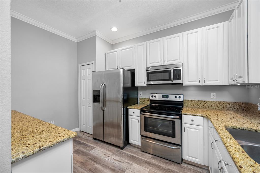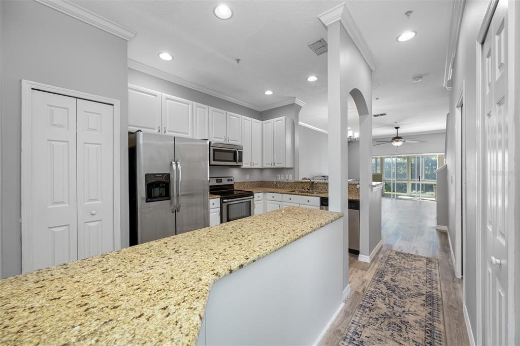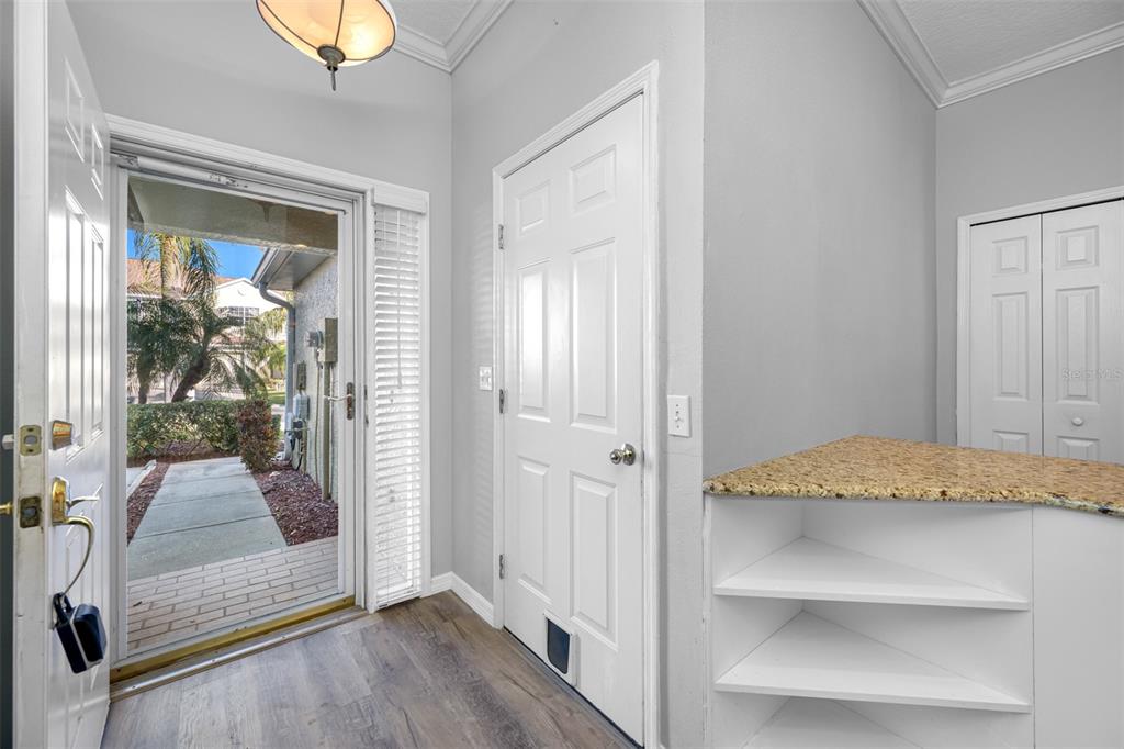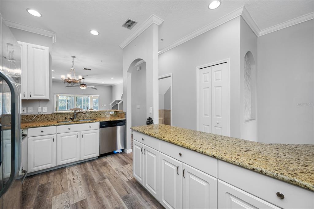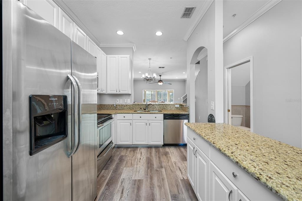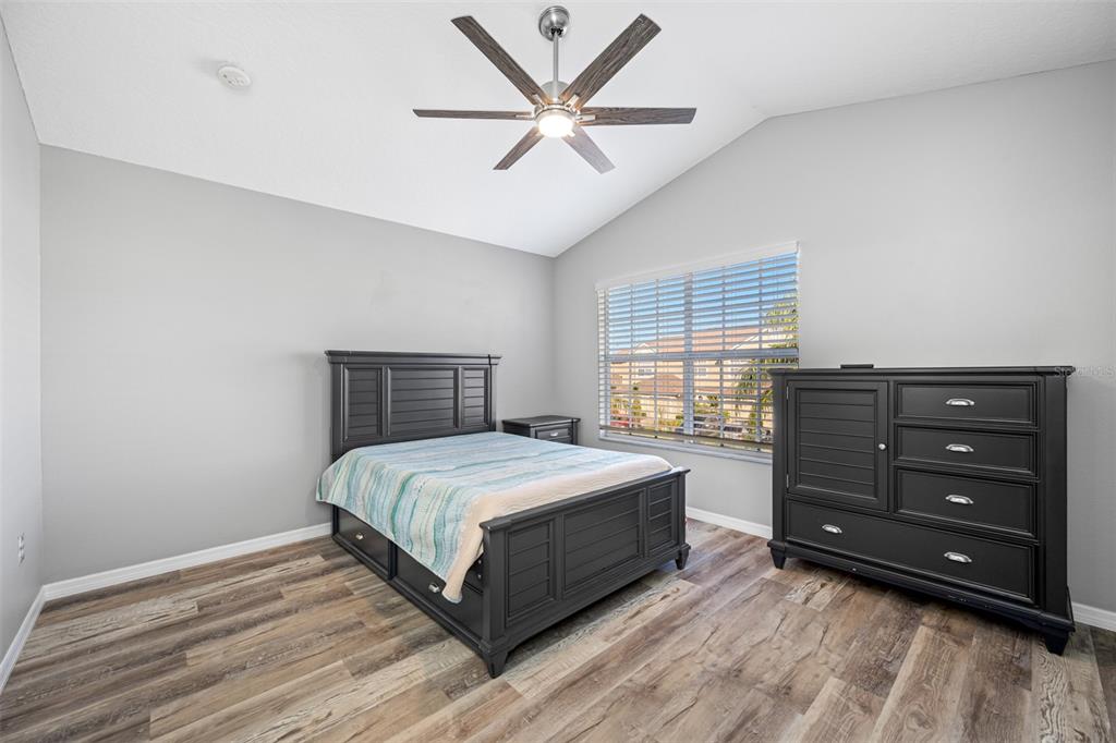 This stunning 2-bedroom, 2 1/2-bath home features an attached 1-car garage equipped with a transfer switch for a generator. recently upgraded with brand new vinyl flooring (october 2024) throughout, the home boasts a fully renovated kitchen with granite countertops and stainless steel appliances. a convenient half bath is located just off the kitchen. the open-concept living and dining areas are perfect for entertaining. at the same time, a newly built four-season room with hurricane windows and a door adds 153 square feet of additional space, ideal for a home office or third bedroom. upstairs, you'll find two spacious master suites. the first suite has vaulted ceilings, a large tiled shower, and a generous walk-in closet. the second suite offers high ceilings and an en-suite bath with a shower. a brand new (november 2024) lg washer and dryer are conveniently located in the second-floor laundry room. this remarkable home has new furniture for the dining room, living room, and master bedroom, which are negotiable. the roof was replaced in 2020. the hoa is one of the lowest in the area at just $410/month, covering garbage, recycling, basic cable, internet, and lawn care. the community offers fantastic amenities, including a large heated and chilled pool, a clubhouse with a new gym, locker rooms, a game room, and a reading room. the clubhouse can be rented for family events for a nominal fee, and residents can have multiple grilling areas. additional features include a private pond with a beautiful fountain and a serene walking path, perfect for pets. this community is one of the few that allows two pets with no breed or weight restrictions, making it a rare gem.11246 KAPOK GRAND, ST PETERSBURG, FL 33708