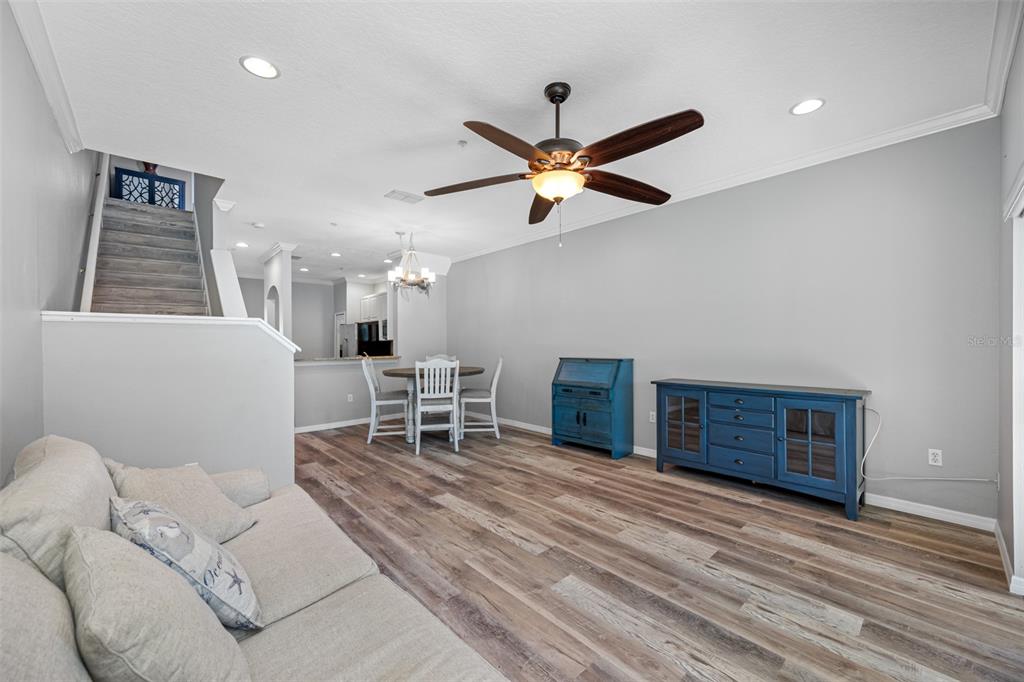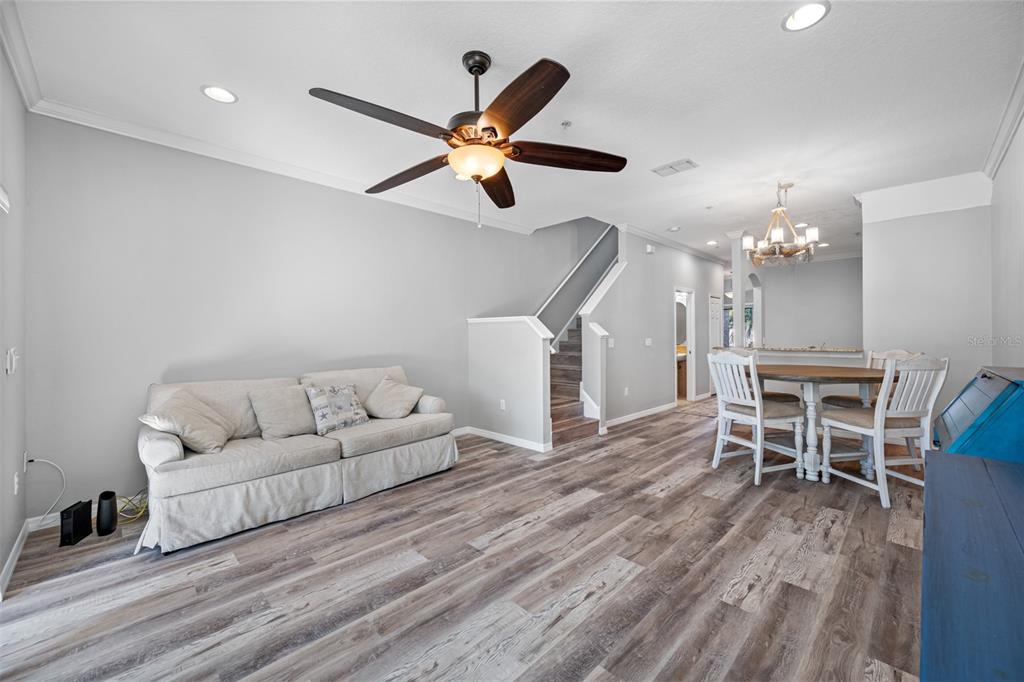 Ceiling Fan(s) High Ceilings Living Room/Dining Room ComboCrown MoldingExterior Features: