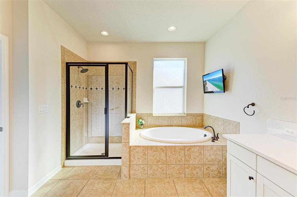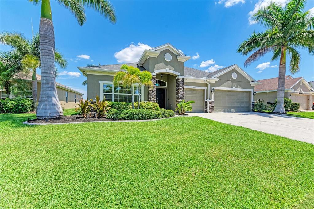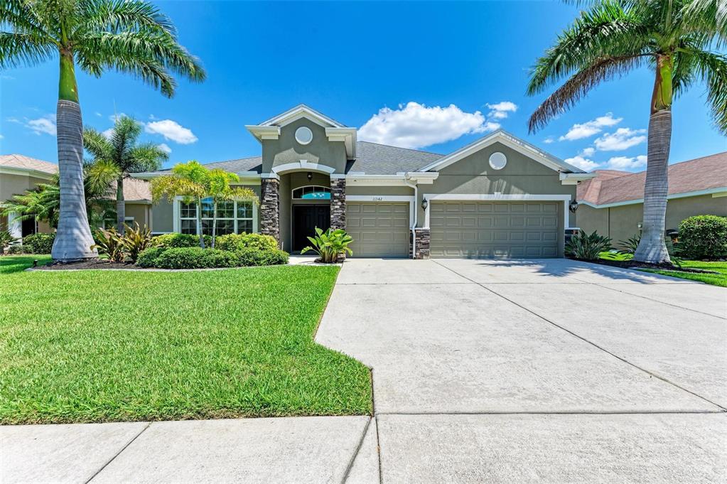 Experience luxury living with this pristine 4 bedroom, 3 bath pool home with fenced in yard. located in copperstone -gated community north river area. the exterior is well maintained with curbed landscaping, gorgeous royal palm trees and cultured stone exterior. the interior of the home will not disappoint, it is an open concept, light and bright. the front of the home has a spacious gathering room that can be used as a formal dining / living room or as shown as a game room. the kitchen is recently remodeled, with room for all your cooking and entertaining needs and has new aristokraft white cabinets with 42" upper full overlay doors that are soft close, new stainless-steel appliances, new glass backsplash, new center island and a breakfast bar. the laundry room is off the kitchen with plenty of storage cabinets and room for laundry basket. the main living area has new waterproof laminate flooring and bedrooms have new plush carpet. the primary suite is located in the back of the home with view of the pond has new waterproof laminate flooring, 4 added ceiling lights with 2 different lighting options. there are 2 separate walk-in closets with new laminate flooring that lead to the on-suite. the on-suite has new cabinet vanity with full overlay doors and soft close, new iced-white quartz countertops and mirrors, soaking tub and separate shower. the luxury heated pool and spa are a dream with a pebble-tech interior finish, salt chlorinator, pentair wi-fi controlled pool system with new led color changing lights in pool & spa and shell stone paver deck. other features include a new trane 2 stage hvac system, whole house water softener and filtration system. the community offers an updated clubhouse, 2 pools, fitness center, updated and covered playground, sports court with newly added pickleball features. hoa fees include basic cable and internet. don't wait, the parrish - north river area is growing with upcoming shopping, restaurants, hospital, community park and college.11342 77TH E, PARRISH, FL 34219