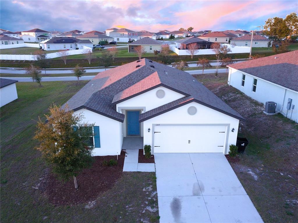 Nestled in a quiet small-town community, this stunning newer home at 1147 moyle way in mascotte, fl, boasts 1,984 sq. ft. of well-designed living space with five bedrooms and three bathrooms. the open-concept living area is adorned with ceiling fans, tile flooring, and abundant natural light, flowing seamlessly into a chef's kitchen featuring granite countertops, stainless steel appliances, shaker cabinets, and a convenient island overlooking the family room. the spacious primary suite offers a large walk-in closet, dual sinks, and an acrylic shower, while the additional bedrooms include led lighting and ample closet space. outdoor living shines with a covered lanai accessed via sliding doors, perfect for relaxing or entertaining. maintained with meticulous care, this home includes a roof, water heater, and hvac system installed in 2021, ensuring peace of mind for years to come. situated close to us hwy 50, shopping, dining, and parks, this property offers a serene lifestyle with easy commutes to central florida cities.1147 MOYLE, MASCOTTE, FL 34753
