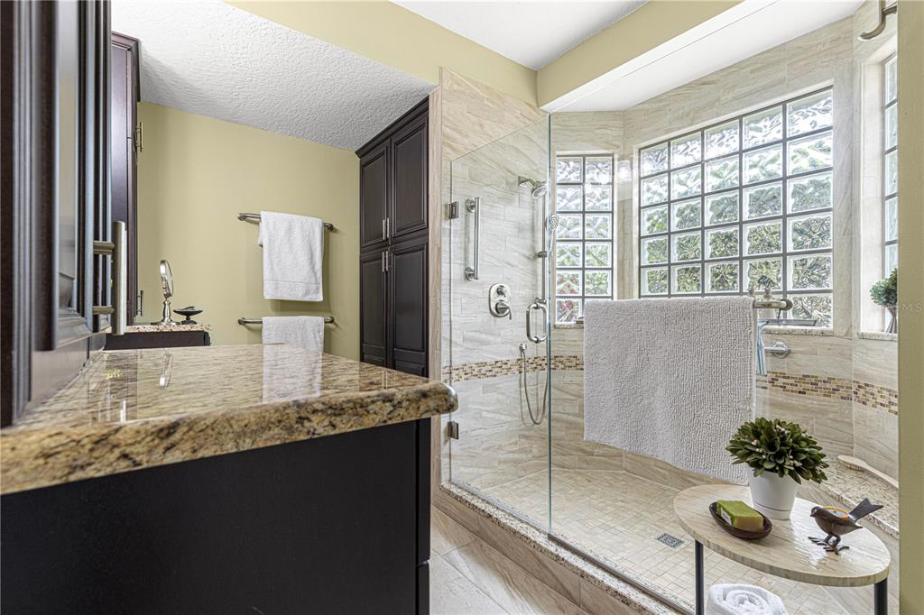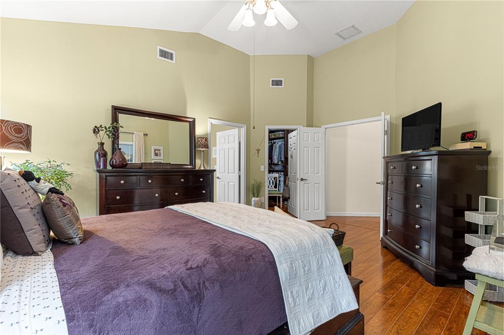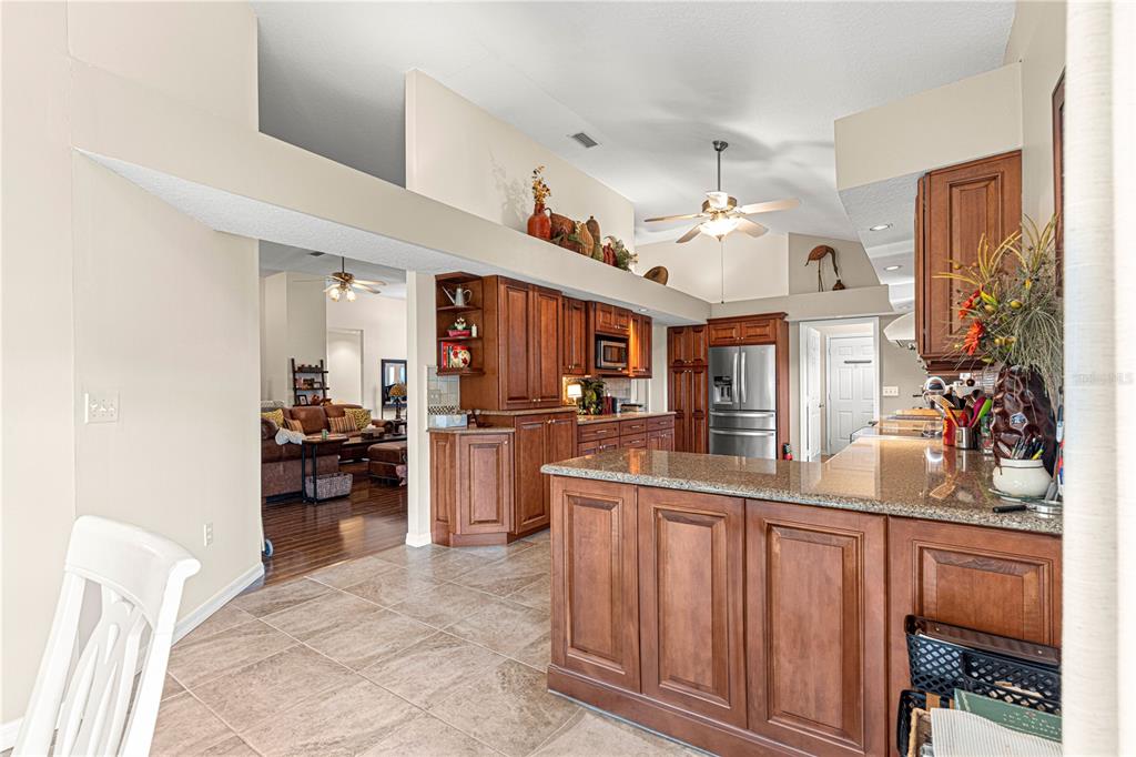 Split Bedroom Walk-In Closet(s) Vaulted Ceiling(s)Ceiling Fan(s) Eating Space In Kitchen High Ceilings Stone Counters Thermostat Open Floorplan Window Treatments Solid Surface Counters Solid Wood Cabinets Primary Bedroom Main FloorExterior Features: