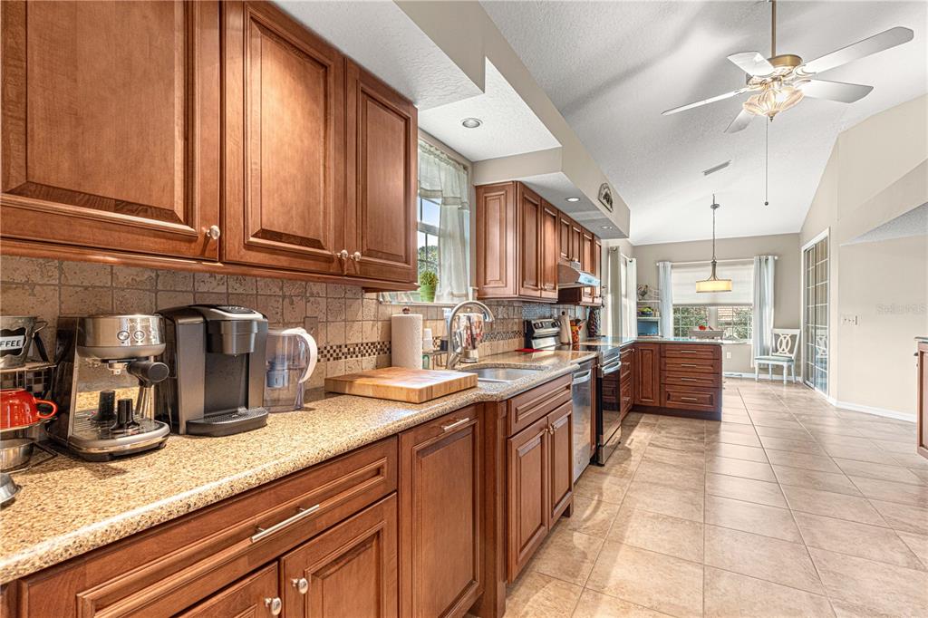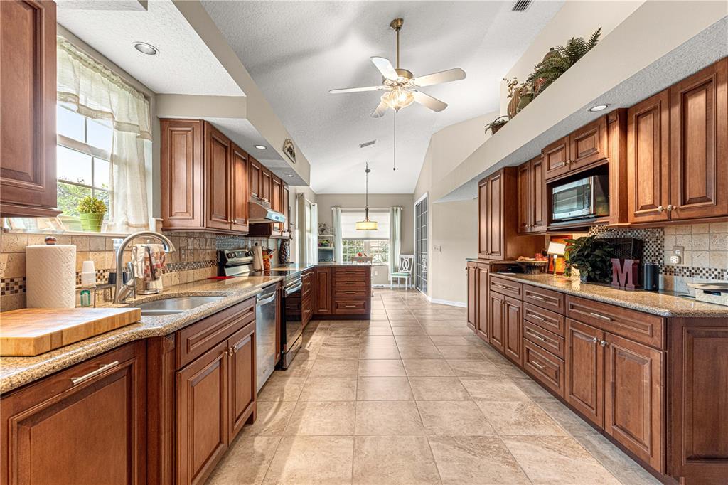 One of the nicest homes you will see in oak run preserve. this is an area of high quality large size homes. this modified monte carlo model is equipped with many high end features and quality upgrades. it sits on a beautiful corner lot with exceptional, professionally installed landscaping. many species of trees and shrubbery dot the scenic and hilly property. very attractive paver stones lend beauty to the driveway, walkway and patio. upon entering the home you will be greeted by an enormous living room. great for entertaining. the warm colors and stunning wood look laminate floors are testament to the time and effort that went into creating this comfortable living space. volume ceilings add spaciousness to the entire room. the kitchen is over sized and has massive storage and counter space. including 2 large pantries. you will love the real wood cabinetry and stone counter tops. this is truly a chefs delight. the master bedroom is large and cozy. the master bath has custom cabinetry, and a very large walk in shower. guest bedroom is large and inviting, bath also boasting a nice walk in shower. the 3rd bedroom is very functional. could easily be used for a relaxing den or dedicated office space. there is a hot water circulating system that allows hot water on demand. the enclosed lanai is perfect for entertaining or just enjoying the view of the back yard. cozy and airy with plenty of room for guests to enjoy our beautiful florida weather. the big garage is extra deep. and has room for 2 cars as well as a golf cart. many cabinets have been installed in the garage. garage has heavy duty electric screen and garage doors. would make a great workspace for the handyman or hobbyist. roof is 12 years old, a/c is 3 years old, water heater is 8 years old. oak run is a 55 plus community with 6 swimming pools and ammenities such as bocce, shuffleboard, pickleball, tennis and more. many different clubs you can join as well. and don’t forget about the beautiful royal oaks golf club within the community. 18 scenic hole with a par of 72. this home and the are have all you could want for quality living and recreational opportunities. very close to shopping, restaurants and more.11593 SW 75TH, OCALA, FL 34476