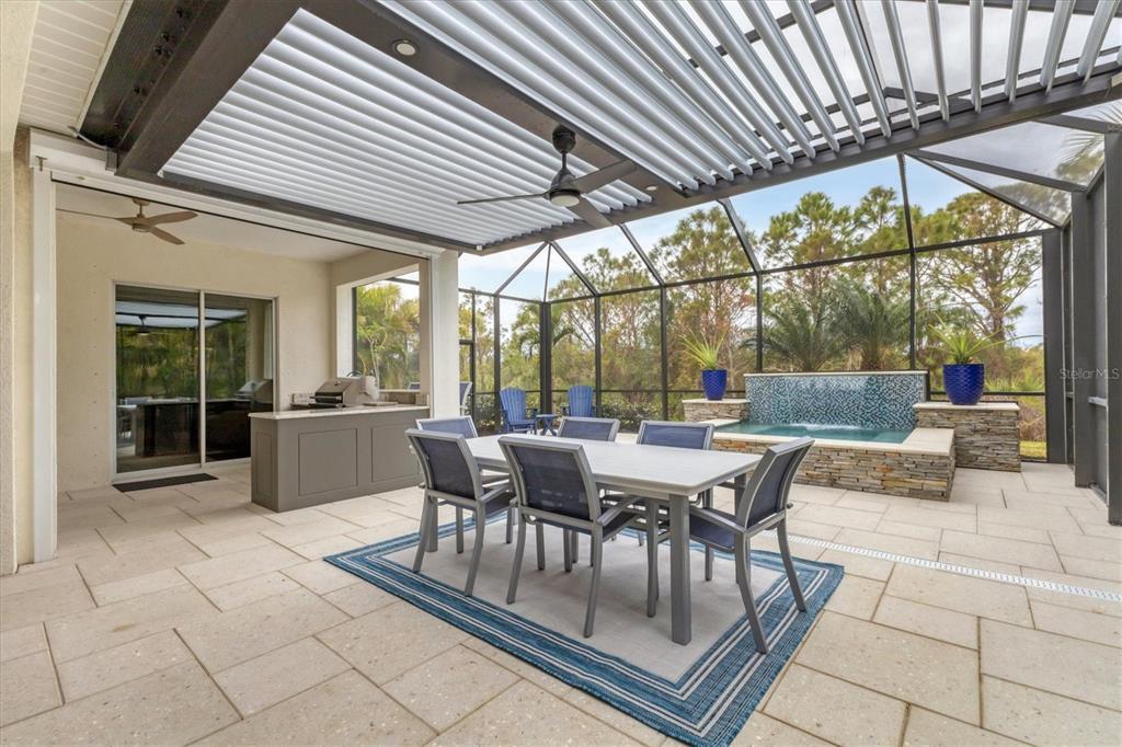Motivated seller, don't miss out on this new $50k price improvement and receive a 1 year home warranty protection plan and 2 mounted televisions! discover your new lifestyle in this stunning luxury home offering over 3,000 square feet of elegance and comfort. unique and noteworthy features include a $48,000 custom built motorized remote controlled 12x20 struxure pergola and an ev 220v plug in charging station in the 3-car garage. designed with an open floor plan, this residence features three spacious bedrooms, three baths and a large second-story bonus room, ideal for all your family needs. in a private preserve setting, this home blends tranquility and elegance. the heart of this palm island floor plan is the main living area surrounded by a beautiful great room, designated dining area and newly installed chef’s kitchen. for the cooking enthusiast, this remodeled custom designed space includes upgraded stainless steel appliances with natural gas cook top and wall-mounted oven and microwave, waypoint double-stacked cabinets with glass display doors, mood lighting, soft-close doors and drawers, pot and pan drawers, spice rack and cookie sheet pullouts, coffee bar, deco trimmed double storage island, tile backsplash, and caesarstone pebble countertops. step through pocket sliding glass doors into your private oasis, where an extended lanai awaits. enjoy the heated spa/pool for relaxing and a fully equipped outdoor kitchen for alfresco dining. you’ll also enjoy peace of mind with the motorized storm smart hurricane screens to protect your outdoor living space without compromising style. some noteworthy upgrades include plantation shutters throughout, designer lighting and fans, crown molding, beautiful custom woodwork and custom built walk-in closets. be sure to inquire within for a full list of design features and upgrades. the amenity-rich community of grand palm is just moments from historic downtown venice, offering the best of florida living. a host of monthly activities await you along with three community pools, fully equipped fitness center, tennis, pickleball and miles of walking and biking trails. experience the ultimate in luxury and convenience with high-end upgrades and thoughtful design at an affordable price. don’t miss this exceptional opportunity to own your dream home in paradise, so schedule your private showing today!11678 AUCILLA, VENICE, FL 34293