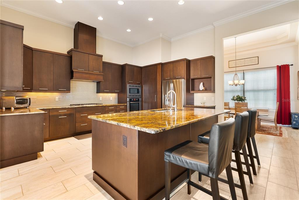 Introducing this elegant residence by sillman homes, exclusive builder of custom homes, offered for sale for the first time. located in the exclusive waterstone on lake butler in windermere, a 24 hour guard gated community; this single story residence offers 4 bedrooms, 3.5 bathrooms, and 3,586 square feet of living space. situated on a corner lot, the home stands out with its generous oversized driveway and spacious 3 car garage. from moment you step inside, the open layout will make a striking impression. a formal dining room sits to the left, while to the right is the guest suite featuring pool view, walk-in closet, and ensuite bathroom, perfect for visitors or multi-generational living. at the center of the home, you will come upon a cozy sitting area with a dry bar conducive to fun entertaining; the dry bar’s countertop match those in the kitchen and the half bath, matching the design seamlessly together. two more bedrooms are tucked in their own secluded wing at the front of the house, sharing a jack-an-jill bathroom. the gourmet kitchen is a showstopper, featuring natural gas cooking appliances (cooktop, oven, dishwasher, and microwave by bosch, and lg stainless steel refrigerator with ice & water dispenser), granite countertops and custom modern style cabinetry. hidden pantry provides abundant storage. the kitchen opens to a bright and expansive family room featuring double tray ceiling complemented by natural gas fireplace with stunning stonework. breakfast nook area is right off the kitchen, which is also accentuated by double tray ceiling – perfect for family meals. wall-to-wall windows frame the view of the courtyard pool and lanai, bringing in abundant natural light connecting the indoor with the lush outdoor space. the owner’s suite is located at the back of the home overlooking the pool. it features an oversized walk-in closet and luxurious bathroom with dual quartz floating vanities, garden tub and walk-in shower. the pool area is walled off for privacy and is surrounded by mature palm trees. the pool and spa are heated for year around enjoyment; the decking is finished in travertine and lanai is featured with remote controlled screens. high end tile flooring runs throughout the main areas, engineered hardwood flooring is featured in all bedrooms. additional upgrades include high wind impact resistant glass in the windows and sliding doors; crown molding throughout. the house is wired for alarm system and is connected to natural gas, public water and sewer. hot water is provided by three tankless heater units. waterstone on lake butler residents enjoys private pedestrian gate accessing directly to windermere preparatory school. the community is ideally located near top tiered public and private schools, shopping, upscale dinning and major highways. orlando’s world renowned attractions and the orlando international airport are easily accessible. don’t miss the opportunity to own this one-of-a-kind home. schedule your private tour today.11706 WATERSTONE LOOP, WINDERMERE, FL 34786