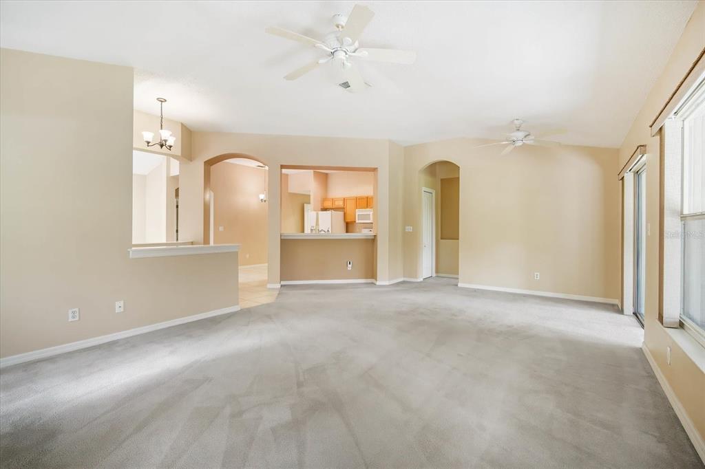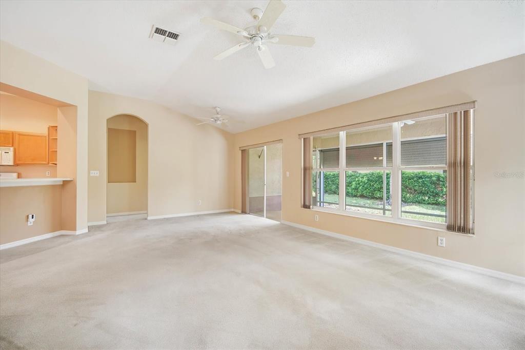 Split Bedroom Walk-In Closet(s) Vaulted Ceiling(s)Ceiling Fan(s) High Ceilings Thermostat Open Floorplan Window Treatments Primary Bedroom Main Floor Kitchen/Family Room Combo L DiningCathedral Ceiling(s)Exterior Features: