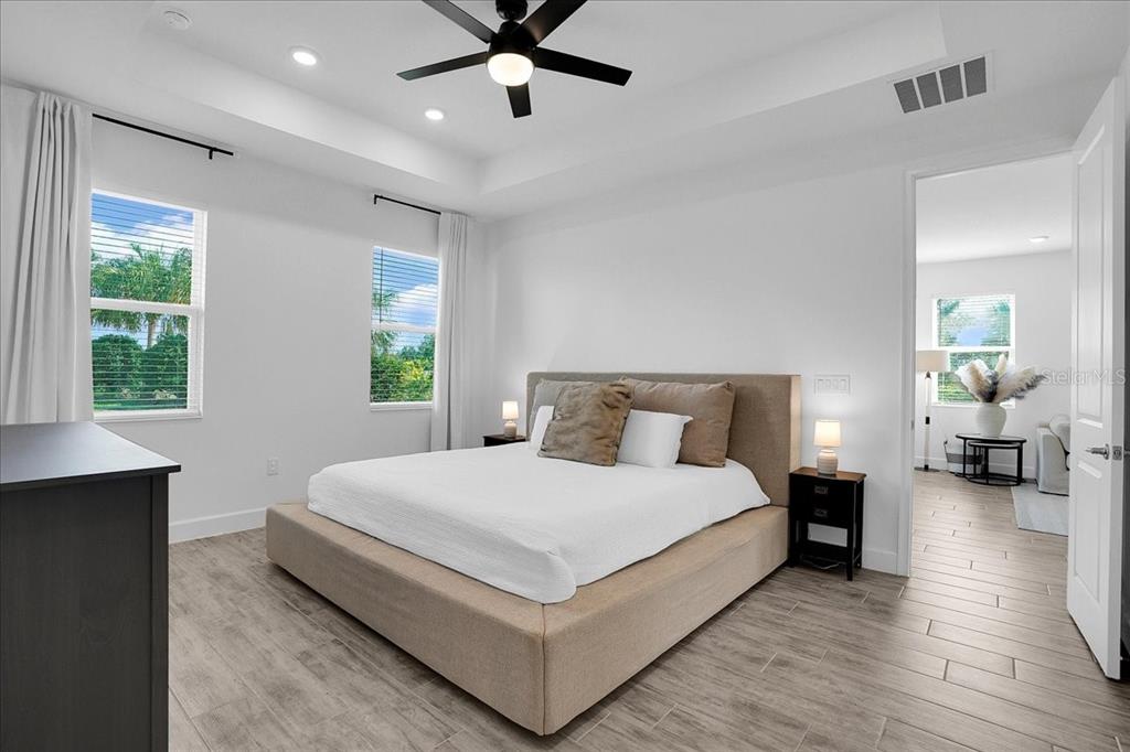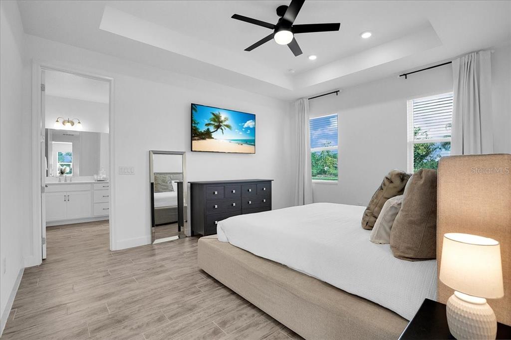 Walk-In Closet(s)Ceiling Fan(s) High Ceilings Thermostat Open Floorplan Window Treatments Primary Bedroom Main Floor Tray Ceiling(s)Exterior Features: