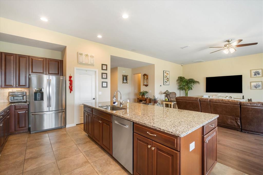 Split Bedroom Walk-In Closet(s)Ceiling Fan(s) Thermostat Open Floorplan Solid Surface Counters Solid Wood Cabinets Primary Bedroom Main Floor Kitchen/Family Room ComboExterior Features: