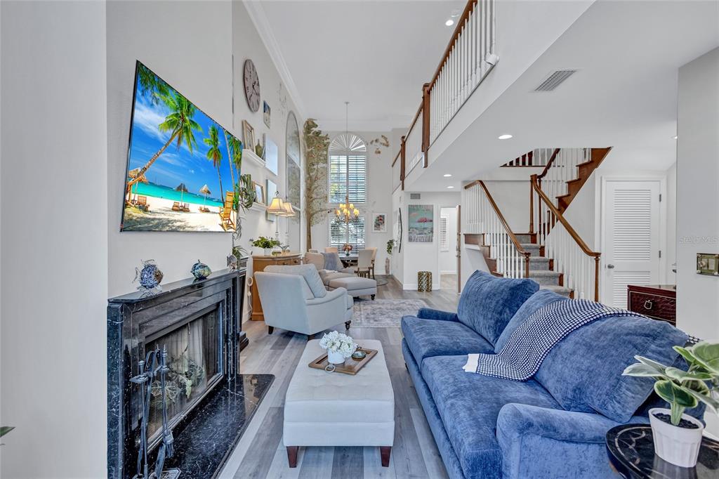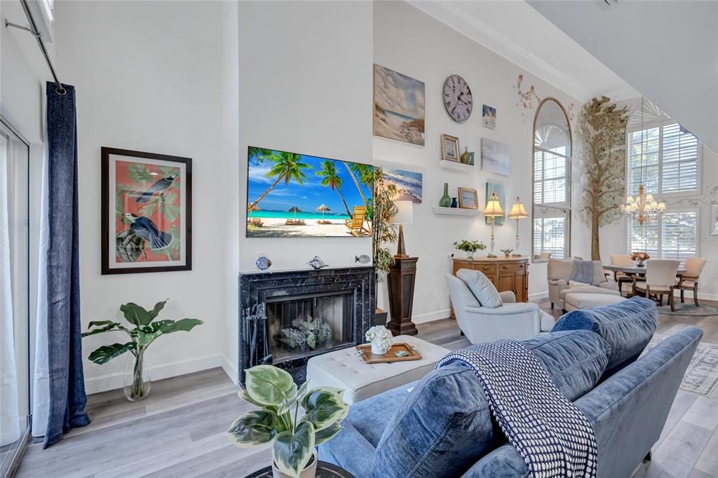 With deeded beach access, this spacious townhouse offers a bonus room, an outdoor terrace, and provides maintenance free living at its best. the unique floor plan of this delightful gulf side home with 2 story ceilings offers a first floor master suite, with guest accommodation on the second floor, plus a loft area ideal as a tv-room or den. new luxury vinyl floors dec 2024,and updated kitchen and baths (2022)on one of those rare chilly florida evenings, relax in front of the wood burning fireplace and look out onto your private terrace. there is a two-car tandem style garage with an extra storage closet for your beach toys. one of only 27 townhomes in this unique siesta key complex, it boasts an attractive pool and spa, plus a private boardwalk leading to the #1 beach in the u.s. this is a perfect year-round or vacation home that lives like a single family home. seller is offering up to $25,000 towards future assessments.turnkey furnished. additional features: wireless home network- security cameras, tv, & door locks 2024, all accessible by cell phone, new tv 2024 with hidden cable box, new washer/dryer 2024, new couches 7/2024, new carpet master bedroom & upstairs 2024,honeywell dehumidifier built into closet, nest thermostats.1185 COQUILLE #305, SARASOTA, FL 34242