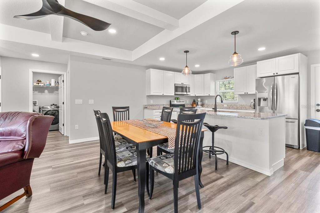 Welcome to this stunning 2021-built home located in the peaceful community of crystal manor, florida. this barely lived-in 3-bedroom, 2-bathroom gem offers modern living in a serene, quiet neighborhood, just minutes away from the pristine waters of lake rousseau and withlacoochee river — both popular spots for boating, fishing, and enjoying nature. the open-concept layout features vaulted ceilings and spacious living areas, creating a bright and airy atmosphere. the well-appointed kitchen is great for preparing meals and entertaining guests with granite countertops, stainless steel appliances, and a large island for extra prep space. also enjoy a 24x35 workshop – a dream for hobbyists, crafters, or anyone in need of extra storage space. his property is an ideal choice for those seeking a modern home in a serene, nature-filled location. don’t miss the opportunity to make this beautiful crystal manor property yours!11855 W FLAXEN, CRYSTAL RIVER, FL 34428
