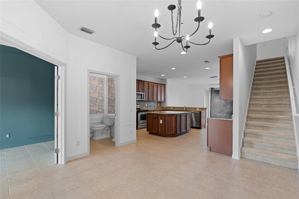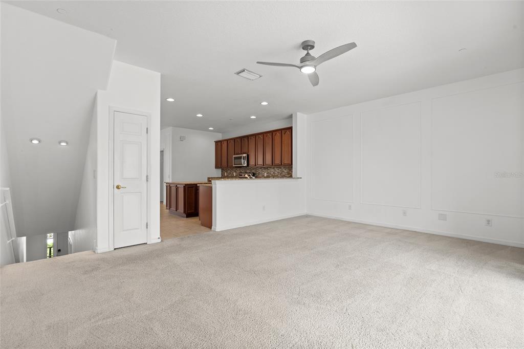 Walk-In Closet(s)Ceiling Fan(s) High Ceilings Living Room/Dining Room Combo Stone Counters Thermostat Open Floorplan Solid Wood Cabinets Kitchen/Family Room Combo PrimaryBedroom UpstairsExterior Features:
