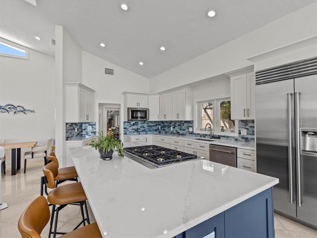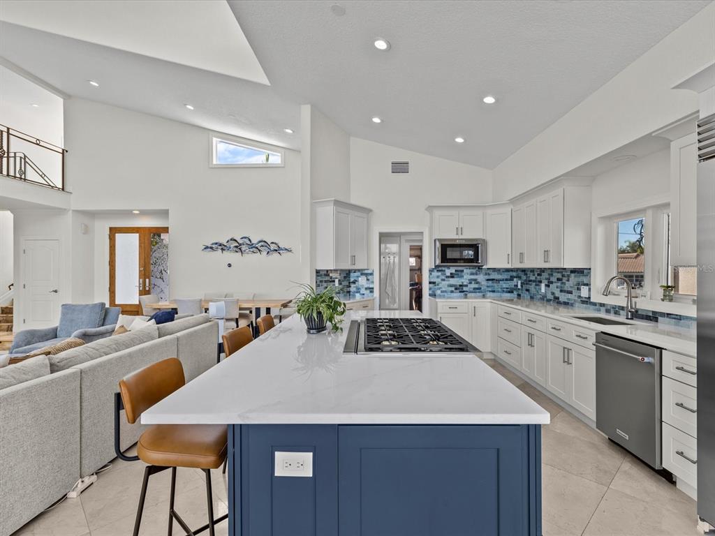 High and dry! this elevated home never flooded during storm and was built to withstand the test of time. this stunning waterfront oasis in highly sought-after belleair beach, fl is a one-of-a-kind, coastal contemporary home with water views from every room. that has been exquisitely updated to offer the perfect combination of luxury, comfort, and style. upon entering this expansive 4-bedroom, 4-bathroom home, you'll be greeted by an abundance of natural light and breathtaking views of the sweeping waterfront vistas of the intracoastal waterways that stretch as far as the eye can see through the floor to ceiling windows. with 3,335 sq ft of open concept living with 20 foot ceilings and gas fireplace that is designed for both entertaining and relaxation. the living, dining, and entertaining spaces are enhanced by exquisite custom finishes, including new soft close kitchen cabinetry, quartz countertops, and marble tile. the new gourmet kitchen is outfitted with premium appliances complete with a dacor gas stove, double electric oven and downdraft range hood in the oversized island and sub zero refrigerator leaving ample space for both intimate meals and grand entertaining. the seamless transition from the interior to the expansive outdoor living area creates a true indoor-outdoor experience. the first floor primary bedroom, offers panoramic water views through your sliding doors to expansive balcony, a spacious walk-in closet, and a spa-like ensuite bathroom. upstairs you’ll find beautiful hand scraped wood floors throughout the 3 additional bedrooms and 2 bathrooms, one of which could be the 2nd primary en suite bedroom with its own private balcony. step outside to enjoy 140 feet of waterfront with the lush landscaping around your beach-entry pool with two waterfalls, a custom outdoor kitchen, new tiki gaslit lamps, new pool pump with gas heater for your spa and a dock with a 16,000 lb boat lift and direct access to the deepwater intracoastal waterway. more upgrades include double thermal impact windows and doors, a heavy-gauge metal roof, air conditioner, new electrical panels, high volume tankless hot water heater, and a full outdoor renovation with new balconies, driveway, pavers, deck, painting inside and out, and new gas supply to the home. this home is ready for its new owners to sit back and relax. this street recently placed all of the overhead utilities underground. this is more than just a home—it's an entertainer's paradise and boater’s dream. with easy access to pristine belleair beach, world class shopping, dining and recreational opportunities, as well as proximity todowntown clearwater and major airports, this property offers the best of coastal living in one of the most coveted locations in the tampa bay area. see video tour below.1201 BAY, BELLEAIR BEACH, FL 33786