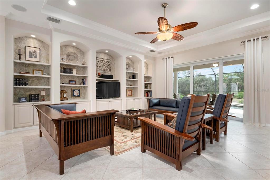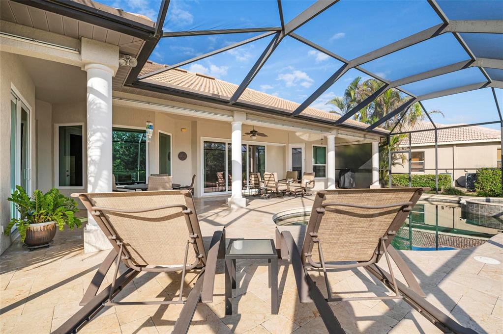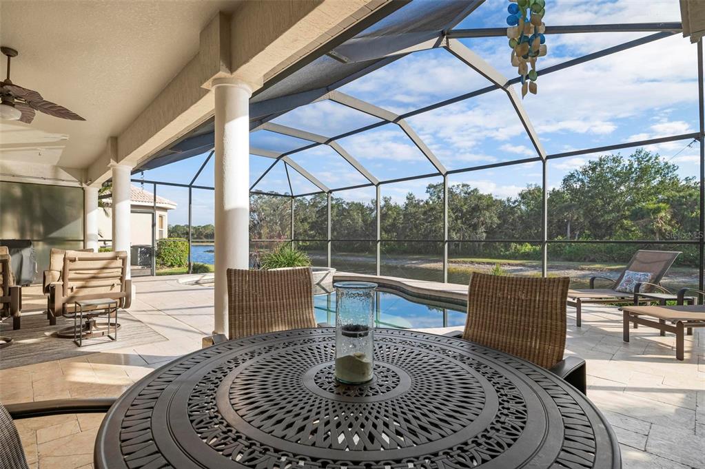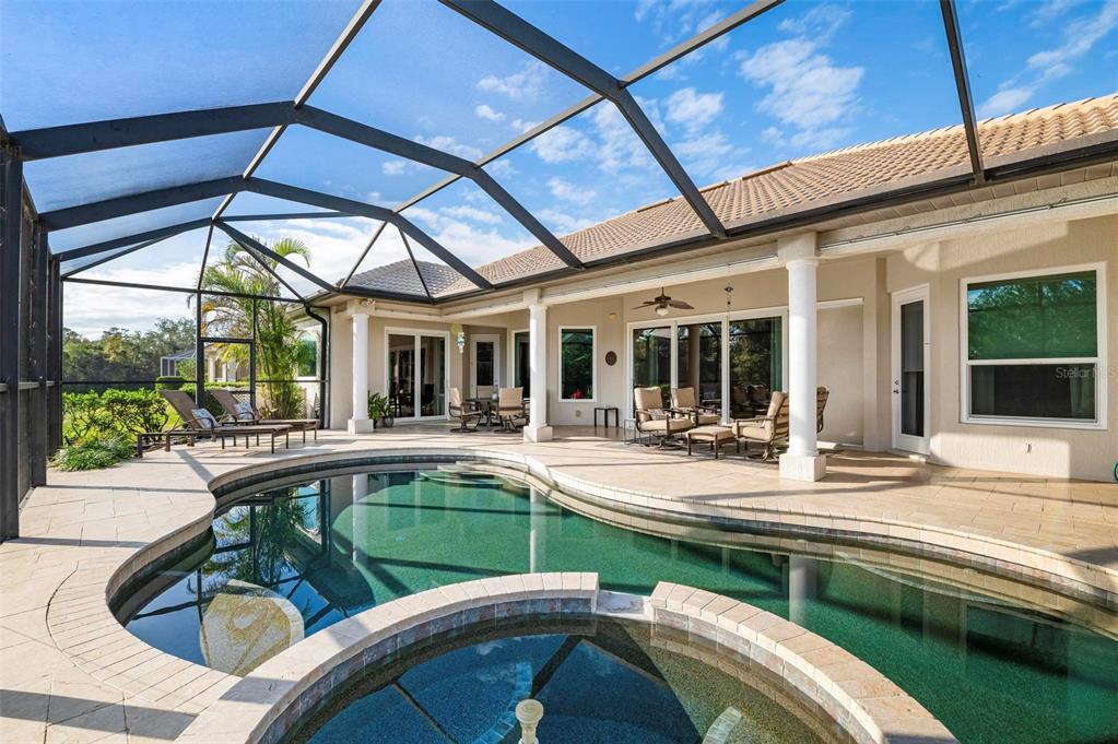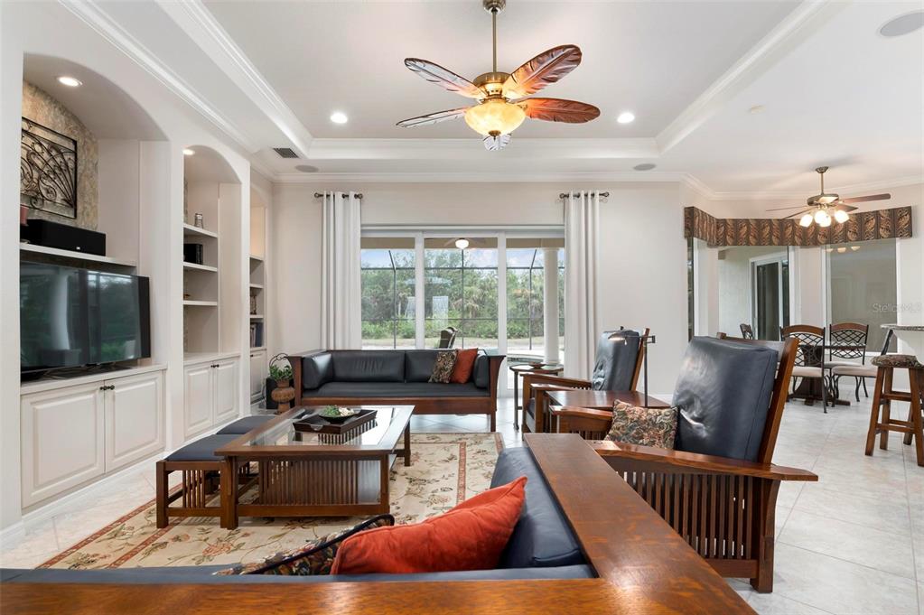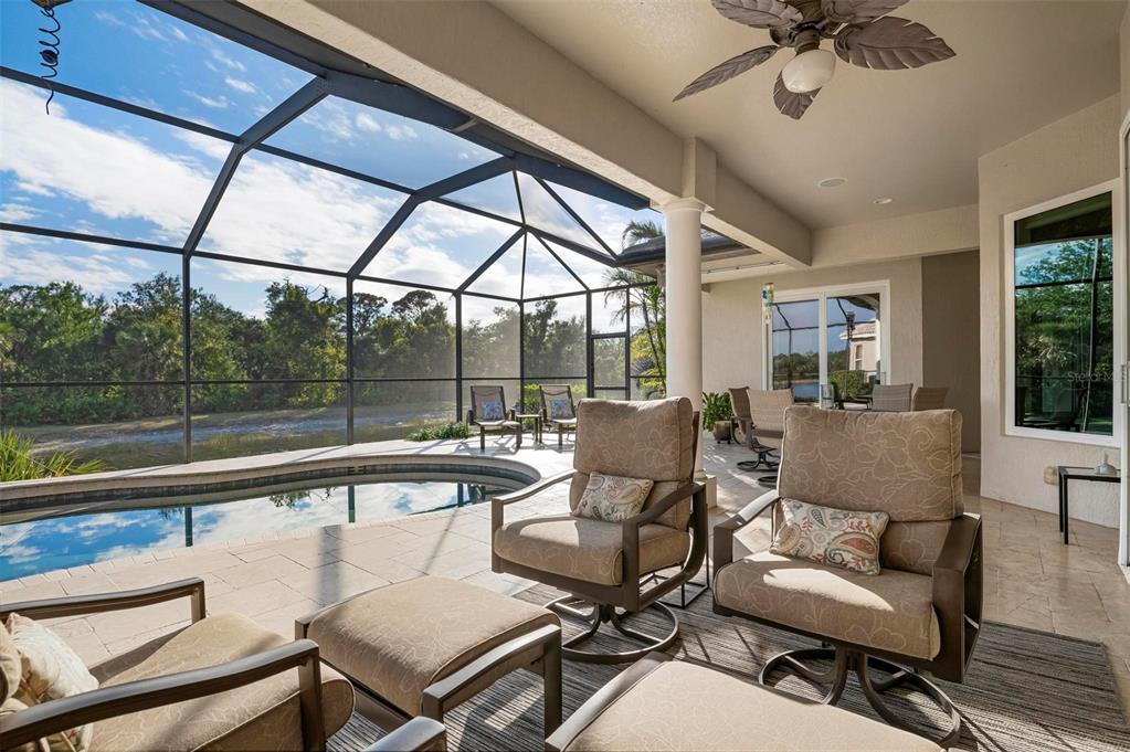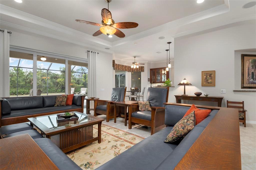 This extraordinary catalina model great room (3/4 bed, den, 3 bath) home, commands an elevated private lake setting. thoughtfully and strategically designed, with whole-house hurricane rated windows (including double-front entry doors and all sliding doors), and an extraordinary amount of quality storage provided by closet systems and built-ins from interior to garage. just a few of the homes many features: all bathrooms have quartz counters, kitchen has built-in oven with separate cooktop and convection/microwave oven, and built-in closet shelving in the den. colored in warm tones of taupe, creme and chocolate brown, with volume 12' ceilings, tray and crown/moldings, handsome cabinets, porcelain tile and wood floors. wall pocketing sliding glass doors merge its interior and exterior under screen spaces, effectively doubling the home's recreational footprint. the lanai has been masterfully finished, grounded by gorgeous marble stone pavers, multi-faceted under roof lounging areas and a spectacular pebble-tek heated pool and spa. the home's audio system, independently controlled by room whether inside or out, adds ambiance whether lounging poolside or entertaining. together with maintenance of lawn care and high-speed internet and expanded cable service, residents enjoy a vibrant lifestyle with 27 holes of semi-private golf, full social membership at the club, an active women's association with over 45 groups, fitness, dining, tennis, pickleball, heated pool, and 24/7 guard house. just minutes away are the quaint shops, dining, beaches, biking/walking trails, fishing, performing arts center, cultural venues and other recreational activities of historic venice island, burgeoning wellen park, and greater sarasota county.1206 TUSCANY, VENICE, FL 34292