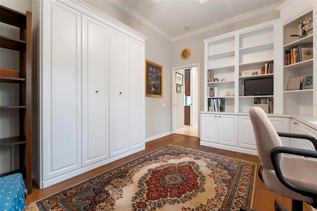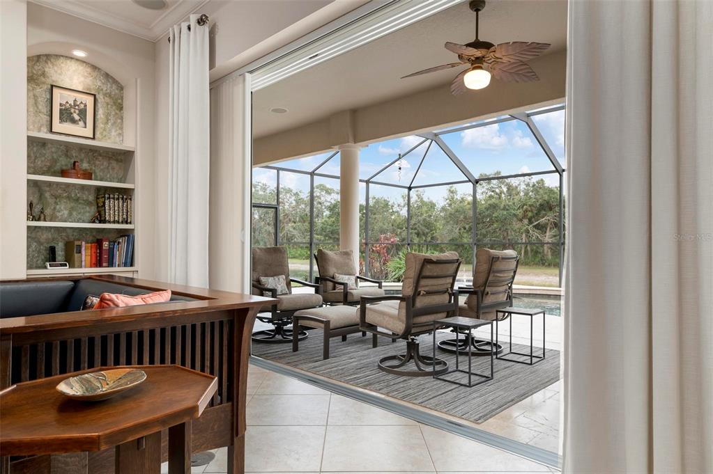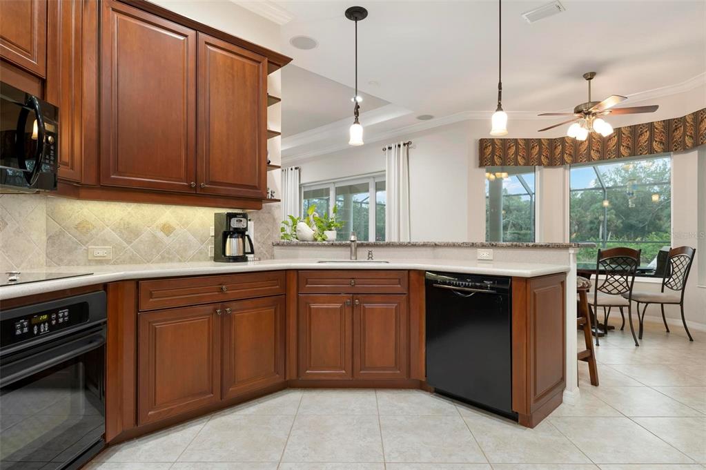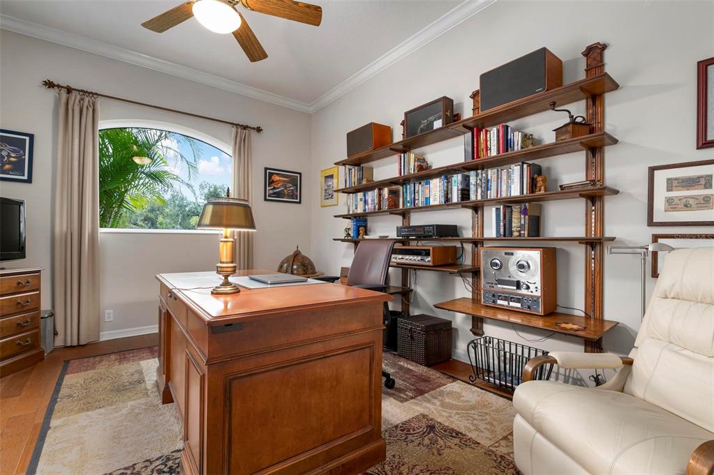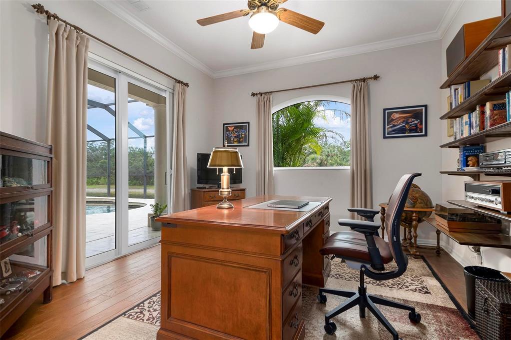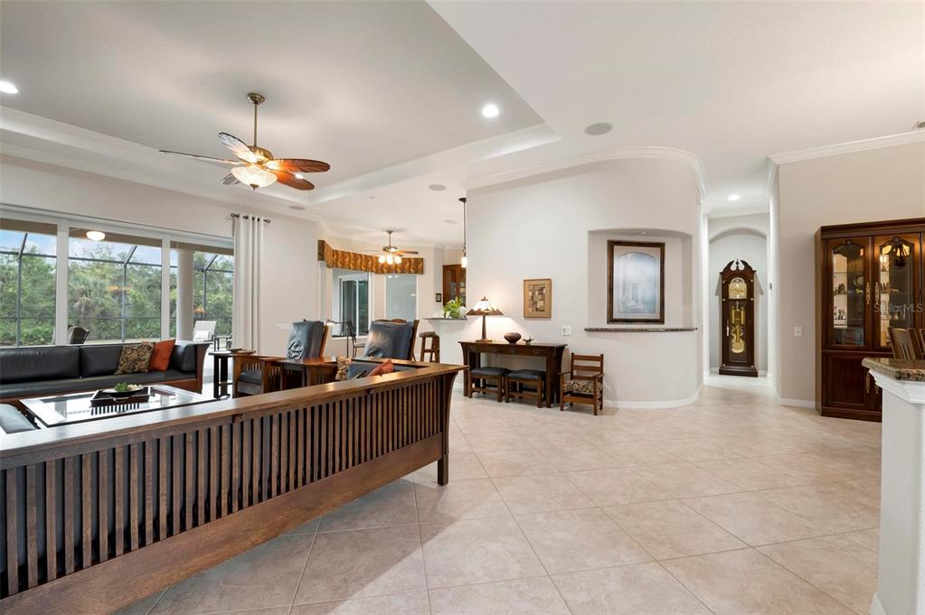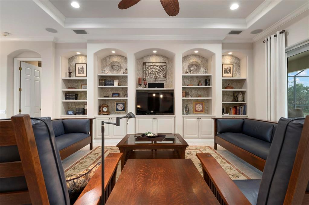This extraordinary catalina model great room (3/4 bed, den, 3 bath) home, commands an elevated private lake setting. thoughtfully and strategically designed, with whole-house hurricane rated windows (including double-front entry doors and all sliding doors), and an extraordinary amount of quality storage provided by closet systems and built-ins from interior to garage. just a few of the homes many features: all bathrooms have quartz counters, kitchen has built-in oven with separate cooktop and convection/microwave oven, and built-in closet shelving in the den. colored in warm tones of taupe, creme and chocolate brown, with volume 12' ceilings, tray and crown/moldings, handsome cabinets, porcelain tile and wood floors. wall pocketing sliding glass doors merge its interior and exterior under screen spaces, effectively doubling the home's recreational footprint. the lanai has been masterfully finished, grounded by gorgeous marble stone pavers, multi-faceted under roof lounging areas and a spectacular pebble-tek heated pool and spa. the home's audio system, independently controlled by room whether inside or out, adds ambiance whether lounging poolside or entertaining. together with maintenance of lawn care and high-speed internet and expanded cable service, residents enjoy a vibrant lifestyle with 27 holes of semi-private golf, full social membership at the club, an active women's association with over 45 groups, fitness, dining, tennis, pickleball, heated pool, and 24/7 guard house. just minutes away are the quaint shops, dining, beaches, biking/walking trails, fishing, performing arts center, cultural venues and other recreational activities of historic venice island, burgeoning wellen park, and greater sarasota county.1206 TUSCANY, VENICE, FL 34292