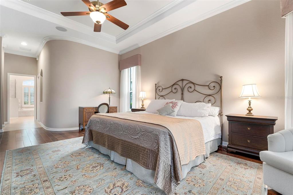Built-in Features Walk-In Closet(s)Ceiling Fan(s) High Ceilings Stone Counters Thermostat Open Floorplan Window Treatments Solid Surface Counters Solid Wood CabinetsCrown Molding Tray Ceiling(s)Exterior Features: