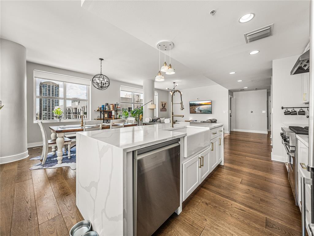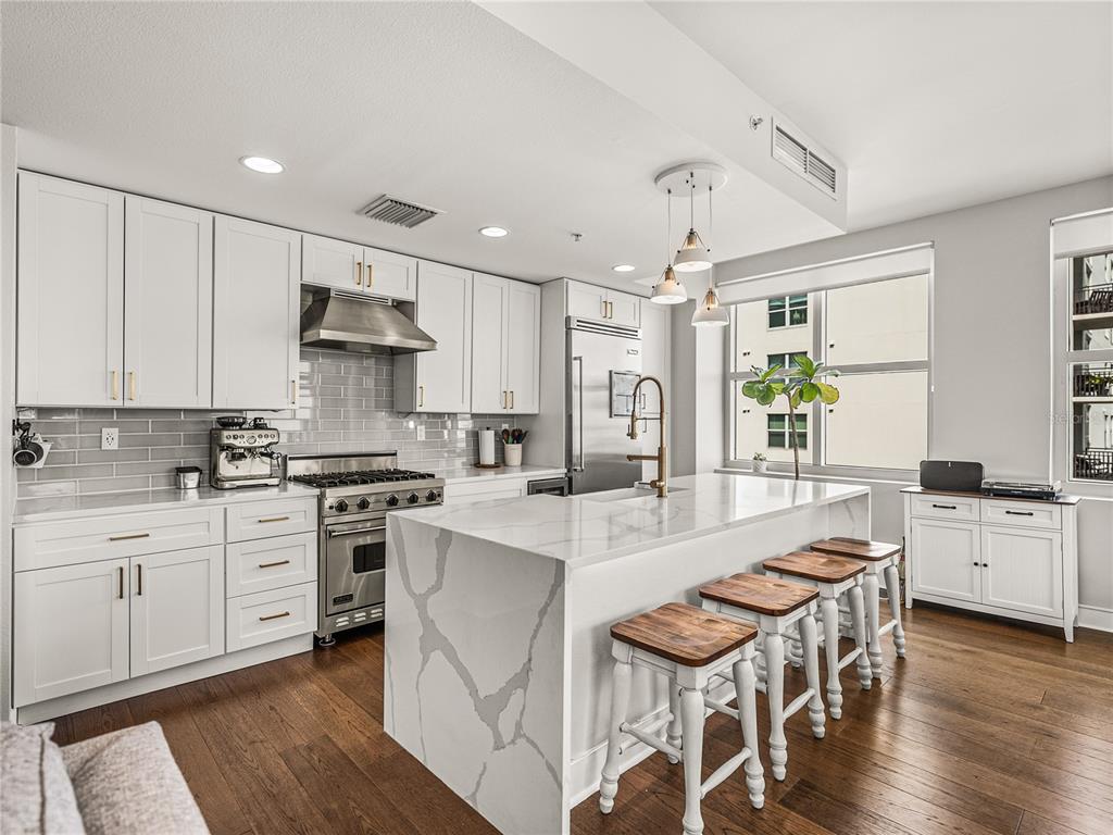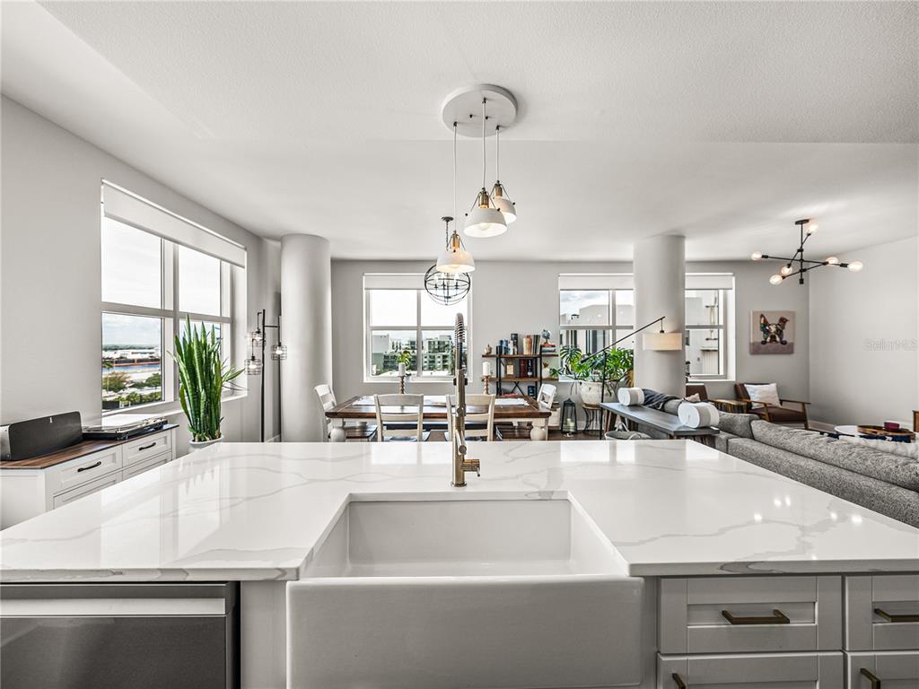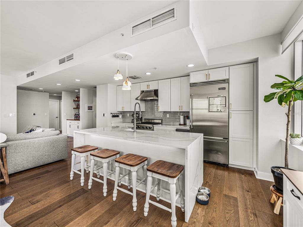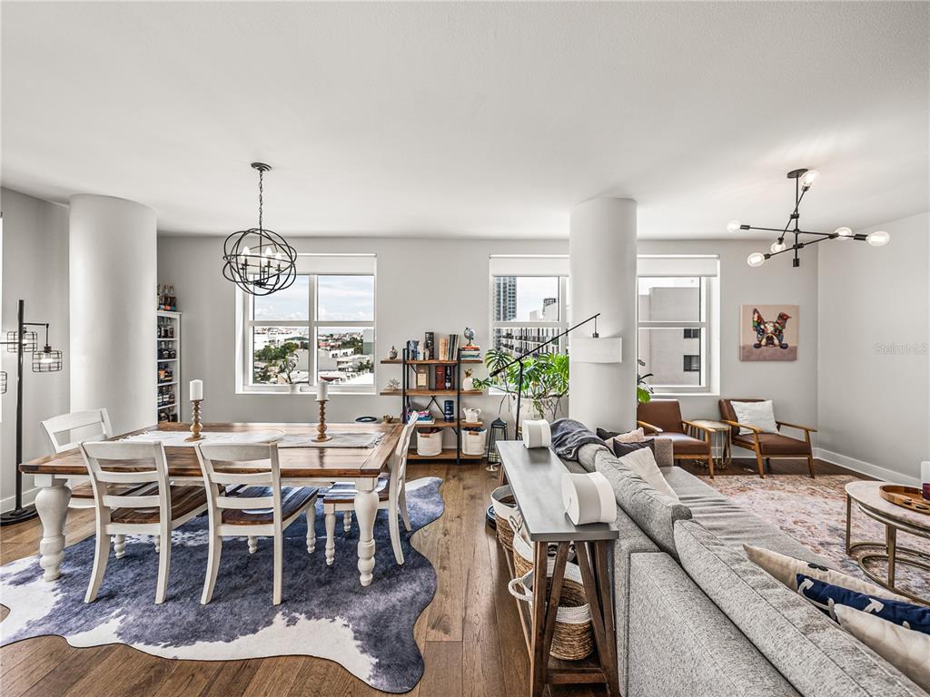 Welcome to grand central at kennedy! this beautifully renovated 2-bedroom, 2-bathroom corner unit located on a private hallway boasts 1,379 square feet of living space. from the moment you enter the home, it's clear that the owners focus is on quality and detail. the open-concept kitchen, living and dining room feature 9-foot ceilings with an abundance of large windows that flood the space with natural light. this quiet and bright unit offers incredible views of the downtown and channelside area. the updated kitchen with stunning quartz waterfall island as its centerpiece has stainless steel appliances, a wine refrigerator and 42-inch cabinets with soft close hinges and custom pull-out drawers. the home also has beautiful hardwood floors throughout, updated light fixtures and custom built-in bar which makes the space warm and inviting. the open concept floorplan is perfect for entertaining family and friends with your favorite beverage or relax with morning coffee and watch the cruise ships pass by. the bedrooms have large windows with privacy shades and walk-in closets. the primary bedroom has an ensuite bathroom and provides privacy from the rest of the home. both bathrooms have been exquisitely renovated. the primary bathroom features a large walk-in shower, vanity with double sink and beautiful extra-large floor tile creating a serene, spa-like atmosphere. the second bathroom has beautiful extra-large floor to ceiling tiles, updated vanity with stone counter and features a standalone tub. this unit also includes two conveniently located reserved parking spaces on the same floor. grand central boasts remarkable amenities on the 9th floor, including two expansive pools with hot tubs, a well-equipped fitness center and a clubhouse. there's also a dog walk area that provides breathtaking views of water street and the downtown skyline. the courtyard and surrounding area of the complex boast a diverse array of dining options, bars, coffee shops, nail salons, massage studio, crunch fitness, cvs, and publix. grand central is conveniently located to all the city's major attractions, with easy trolley access to ybor city and other downtown locations! walkable to sparkman warf, water street, tampa riverwalk, and amalie arena. discover the vibrant lifestyle of channelside and downtown tampa by making grand central your new residence.1208 E KENNEDY #734, TAMPA, FL 33602